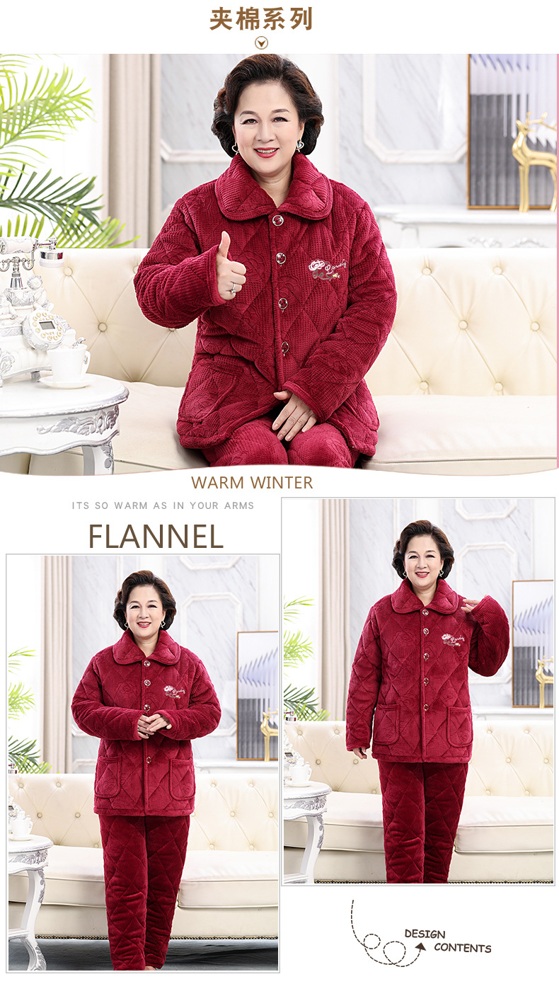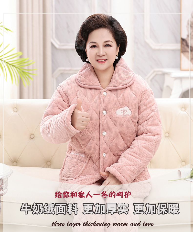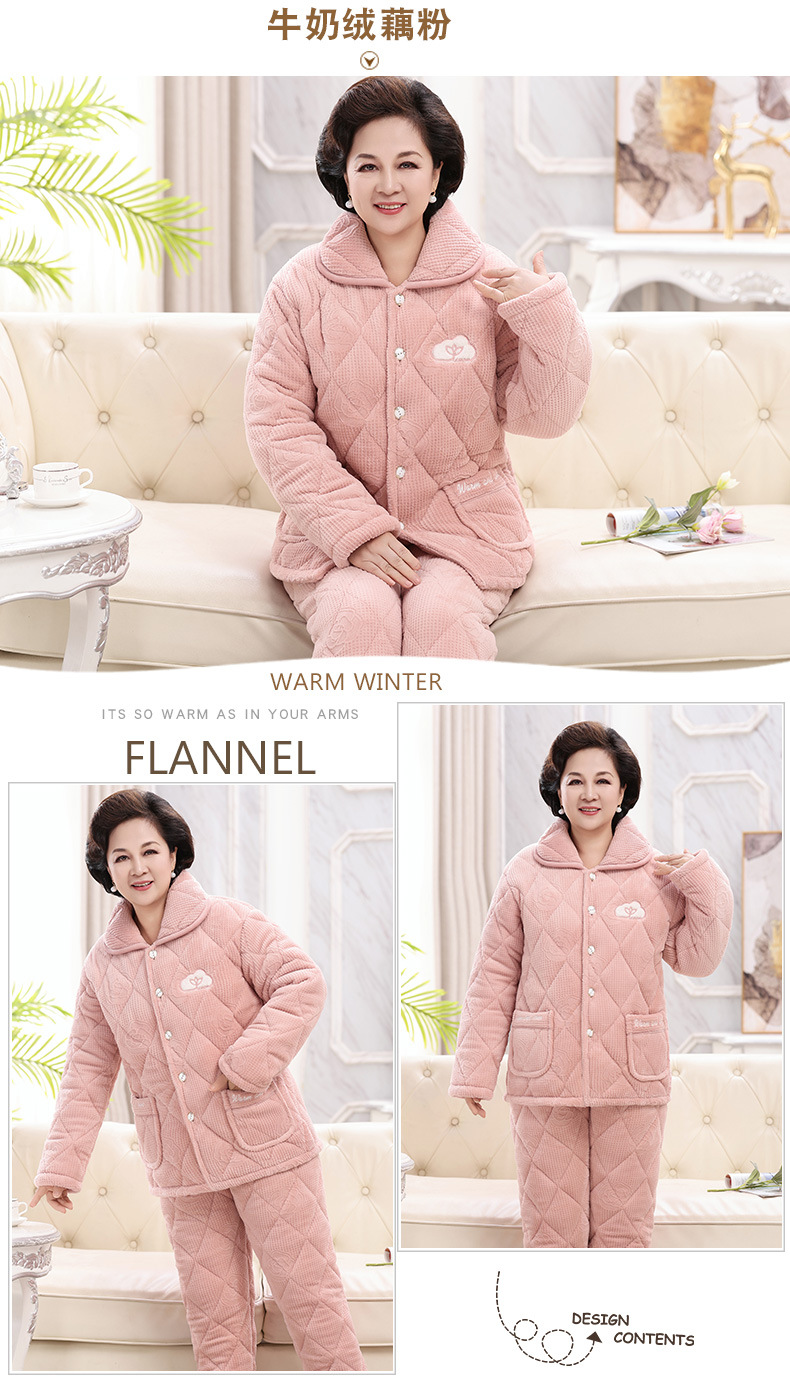 겨울 두꺼운 잠옷 여성의 중년 및 노인 어머니 3 층 면화 재킷 우유 산호 양털 따뜻한 가정 옷 세트