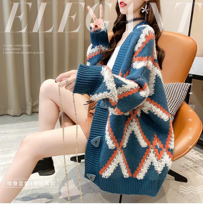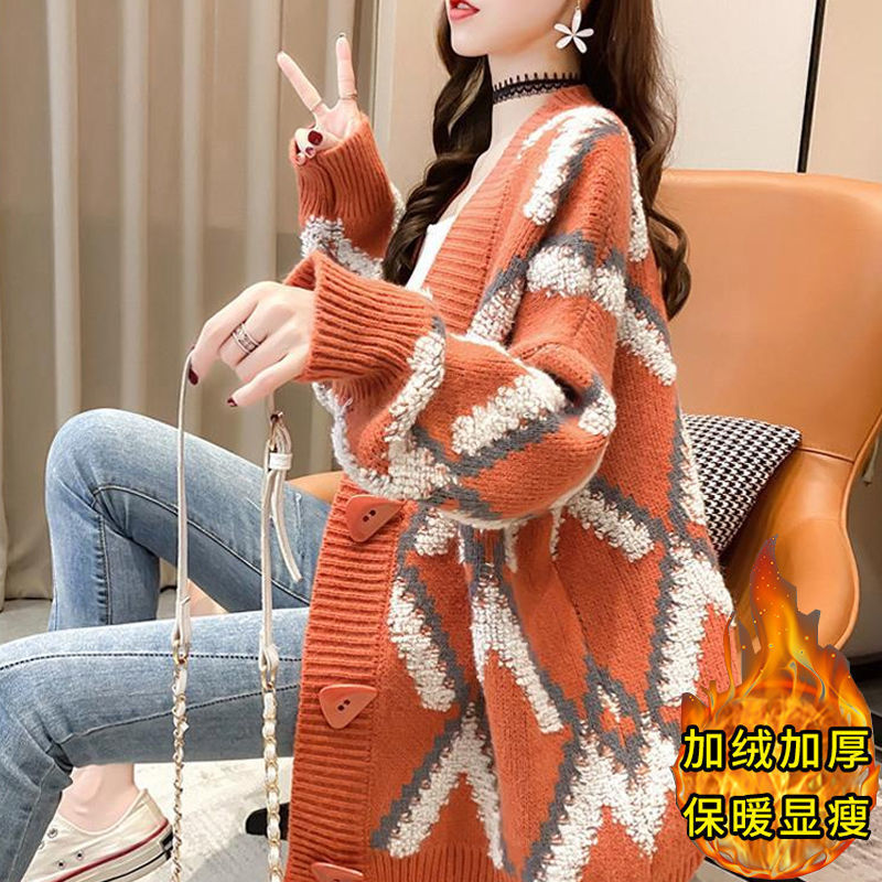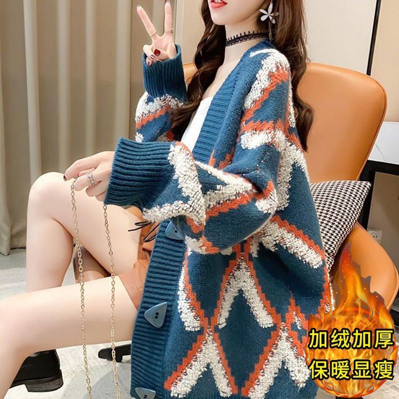 스웨터 코트 여자 가을 겨울 2023 새로운 한국 스타일 느슨한 게으른 스타일 기모 두꺼운 올매치 니트 카디건 탑스토어 가기