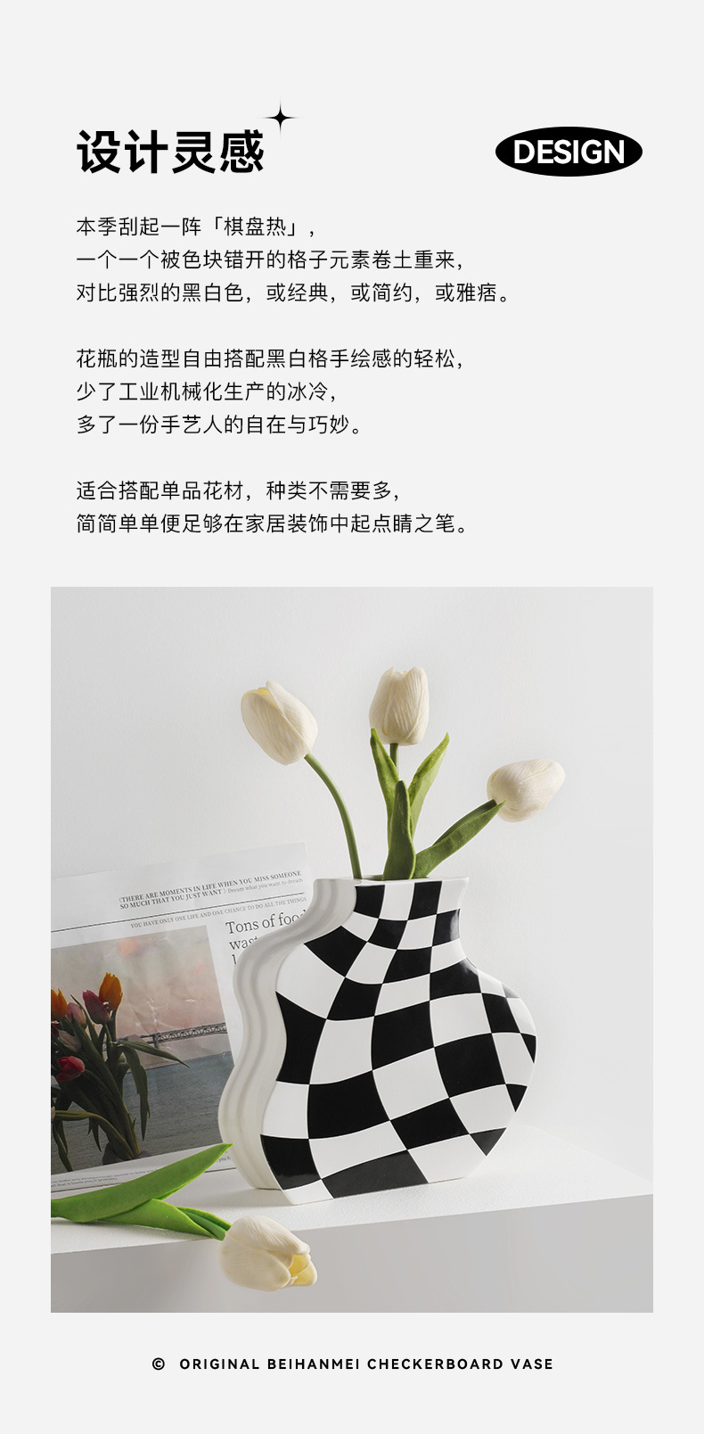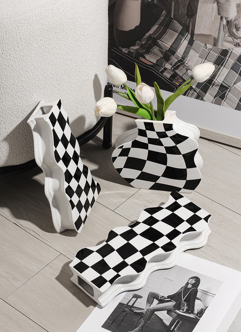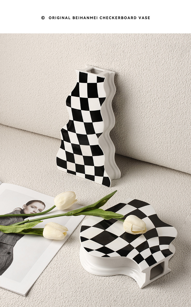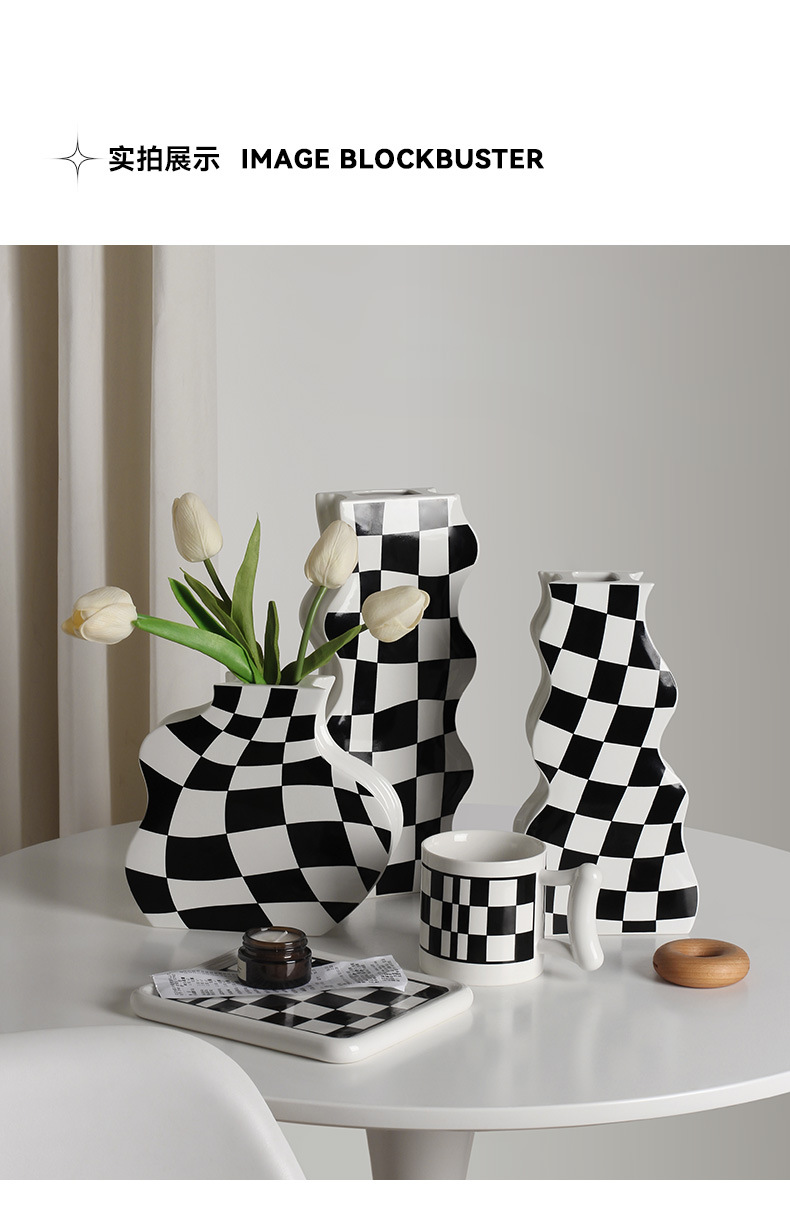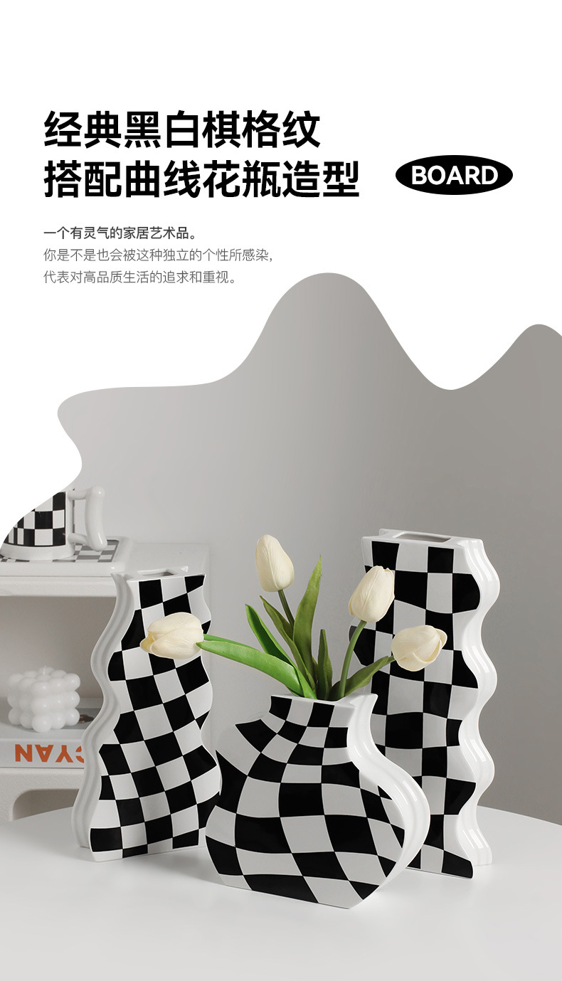Ins 간단한 체스 판 세라믹 꽃병 거실 침실 수경 꽃 꽃병 홈 장식 장식품 도매