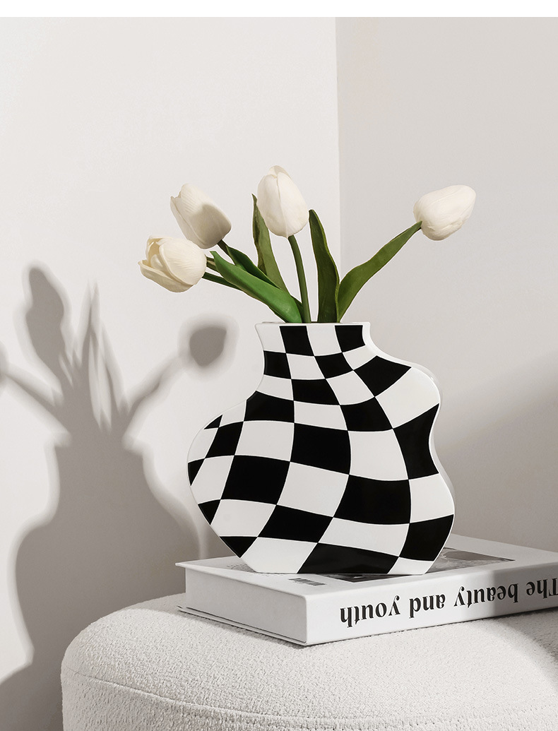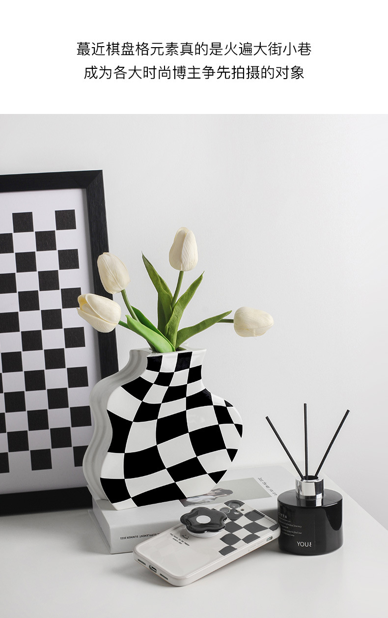 Ins 간단한 체스 판 세라믹 꽃병 거실 침실 수경 꽃 꽃병 홈 장식 장식품 도매스토어 가기