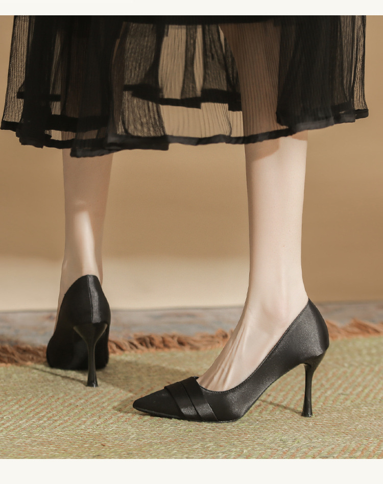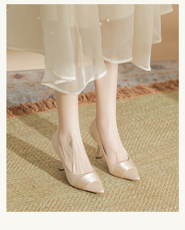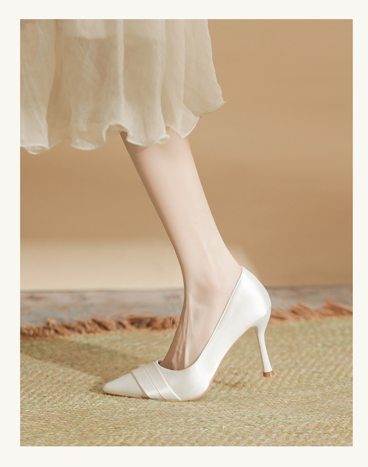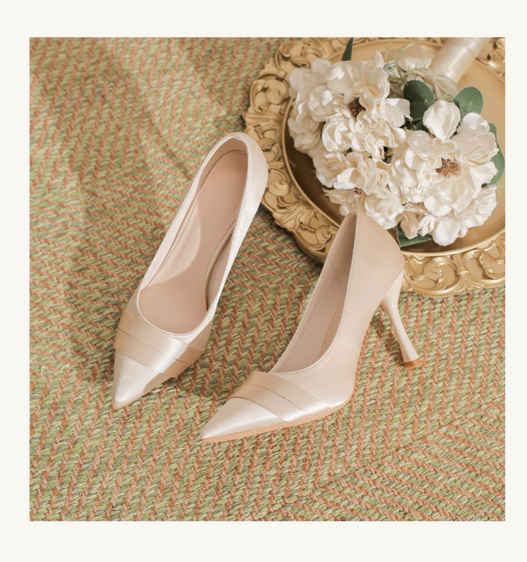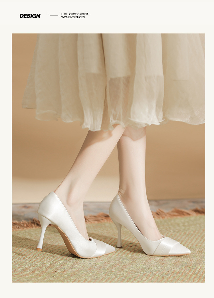 2025 새로운 뾰족한 스틸레토 힐 플러스 사이즈 플러스 지방 넓어진 여성 싱글 신발 스몰 사이즈 새틴 웨딩 신발 요정 스타일