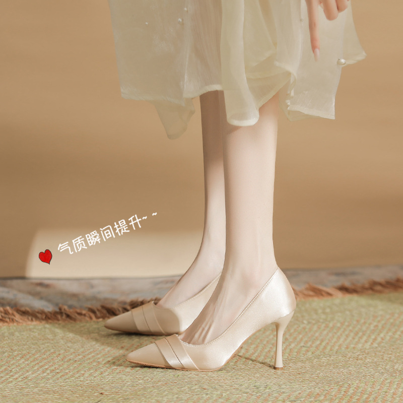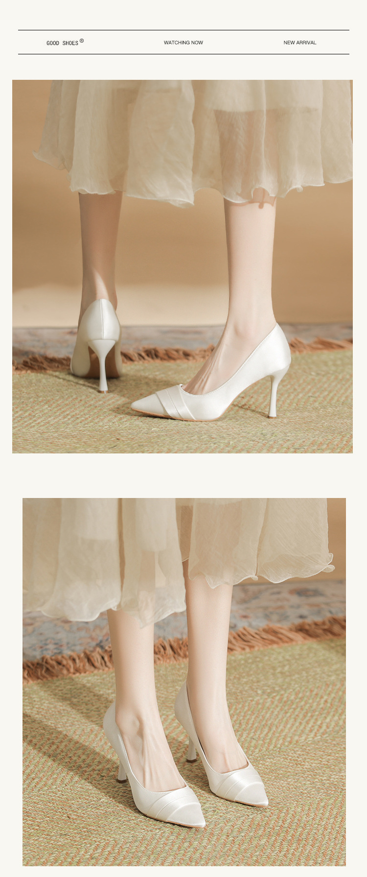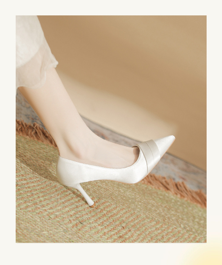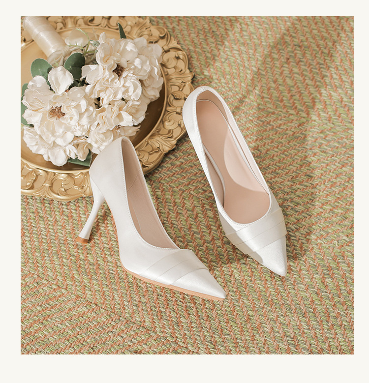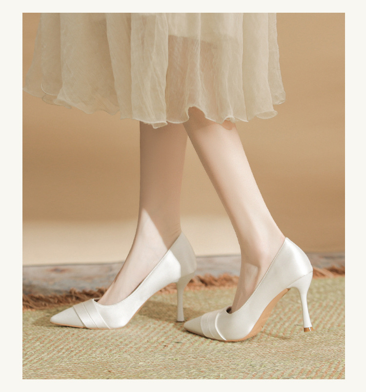 2025 새로운 뾰족한 스틸레토 힐 플러스 사이즈 플러스 지방 넓어진 여성 싱글 신발 스몰 사이즈 새틴 웨딩 신발 요정 스타일스토어 가기