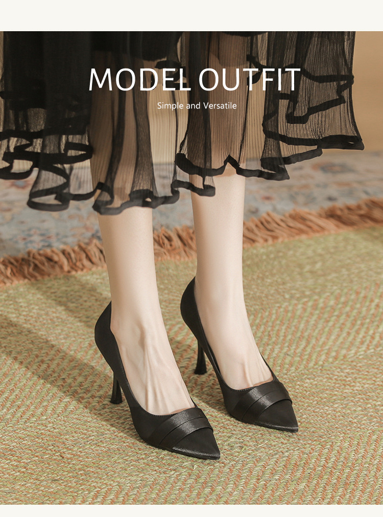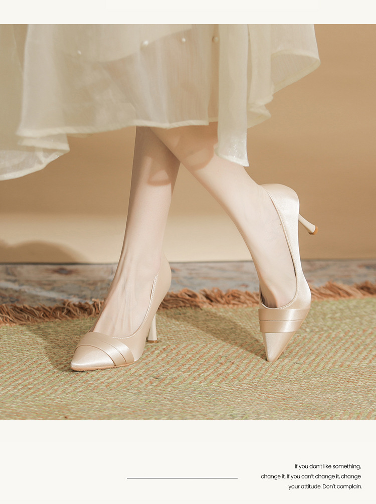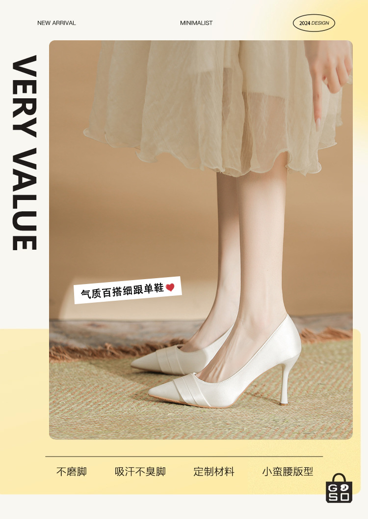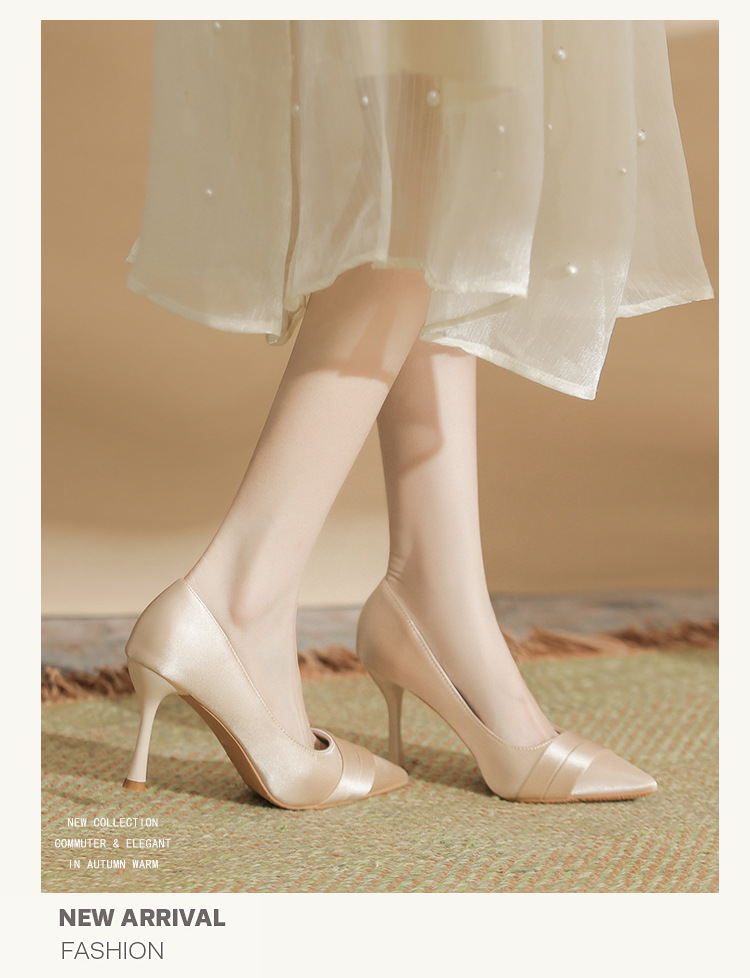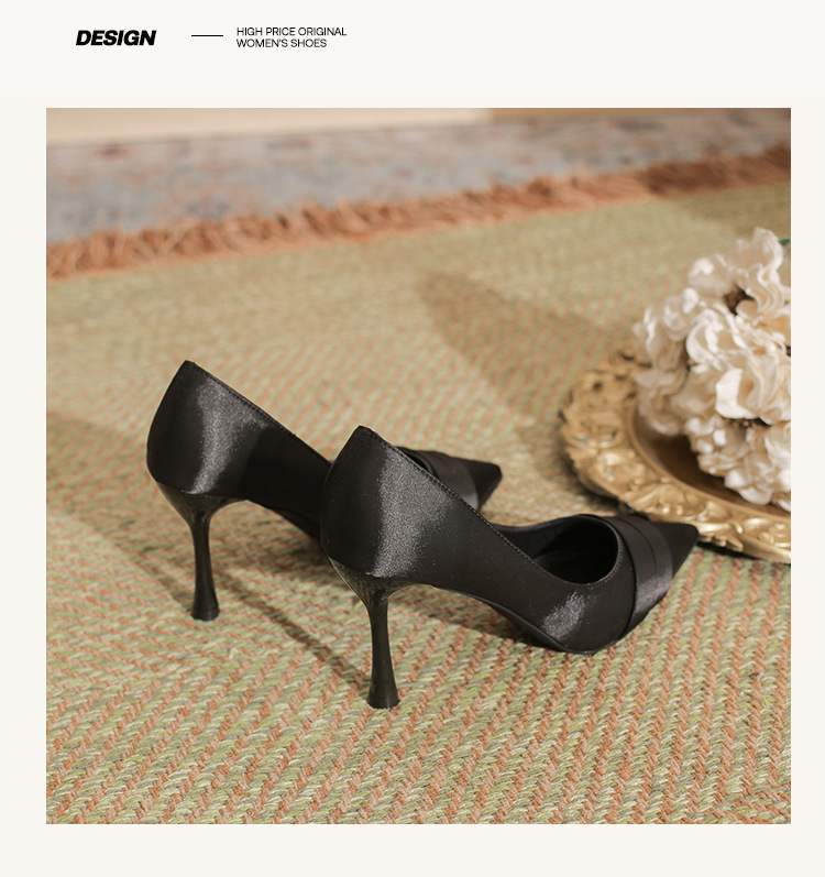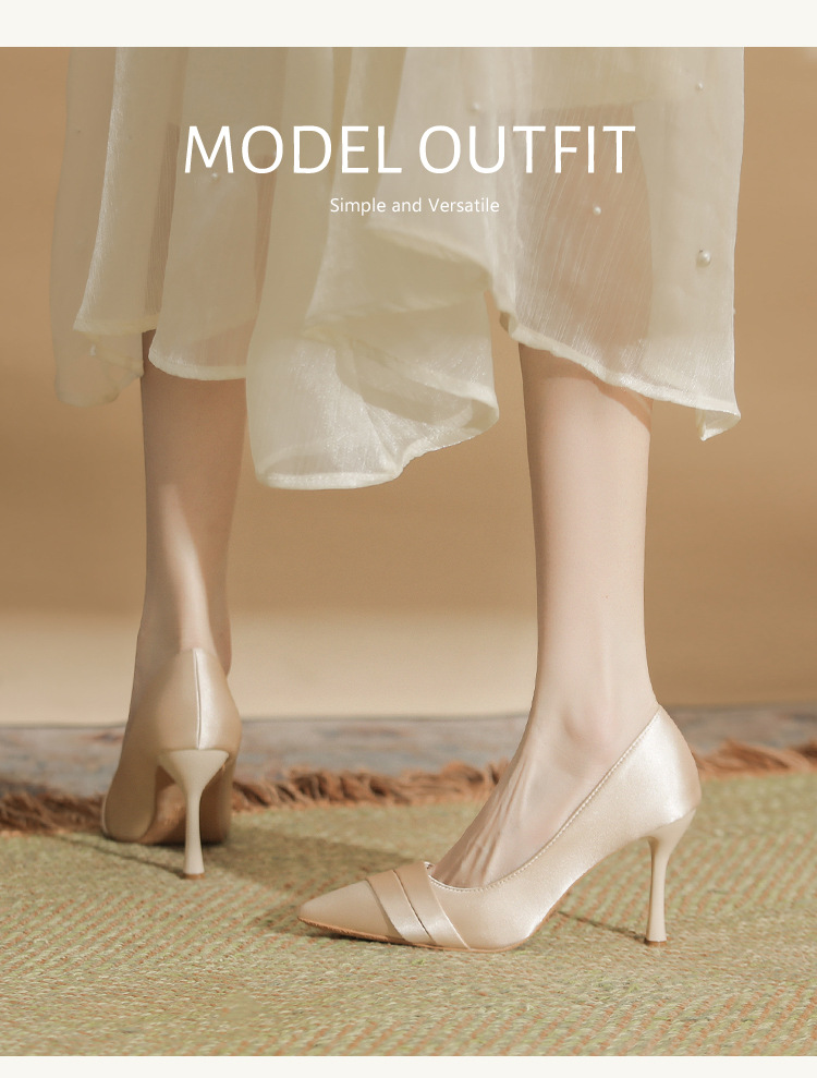 2025 새로운 뾰족한 스틸레토 힐 플러스 사이즈 플러스 지방 넓어진 여성 싱글 신발 스몰 사이즈 새틴 웨딩 신발 요정 스타일스토어 가기
