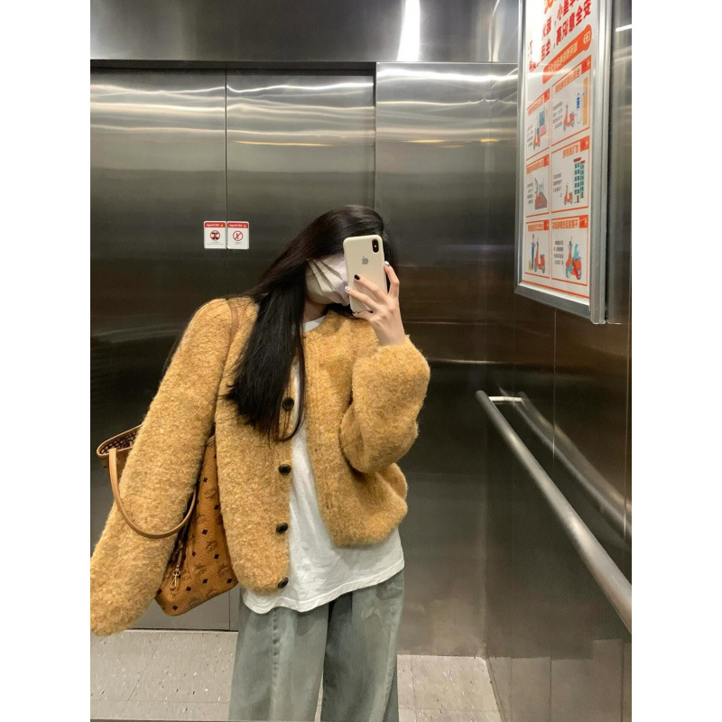 소프트 왁스 게으른 스타일 노란색 니트 카디건 스웨터 여성의 초가을 2024 새로운 짧은 느슨한 재킷스토어 가기