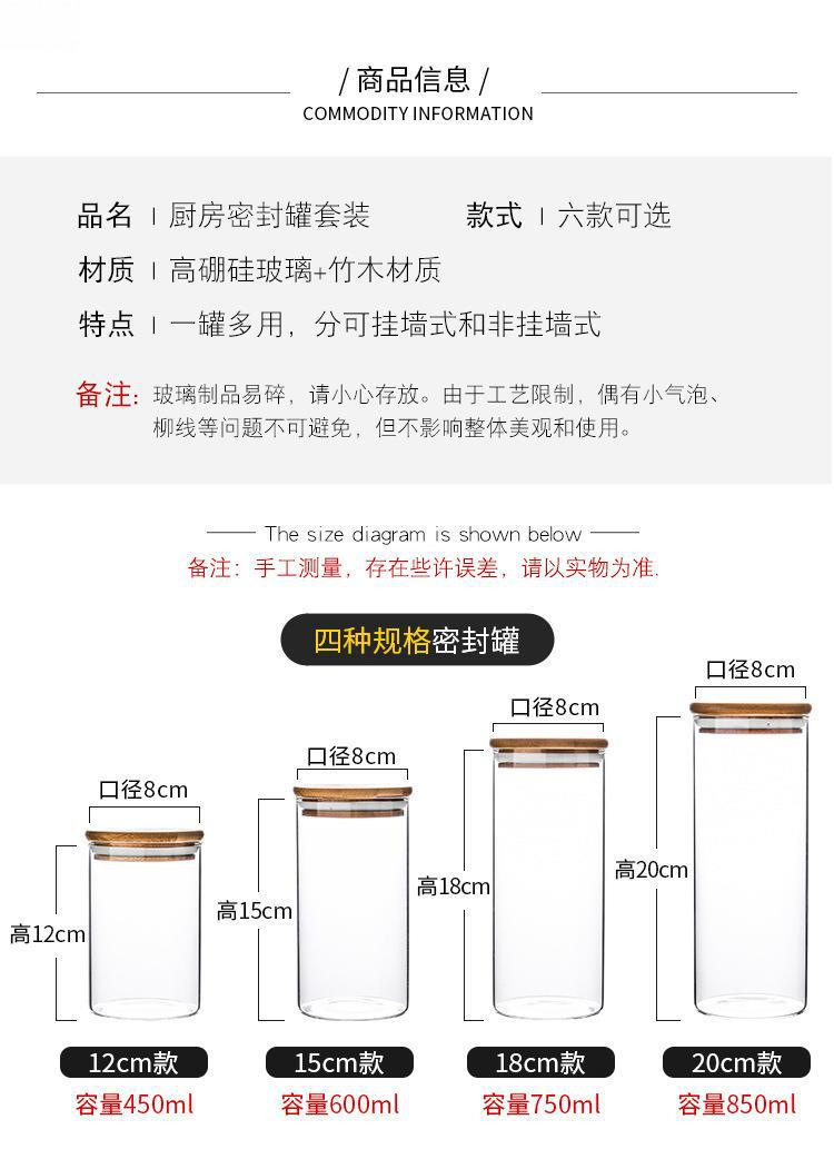 유리 병 밀봉 된 병 차 항아리 디스플레이 항아리 식품 등급 곡물 저장 항아리 투명한 병 주방 새로운스토어 가기