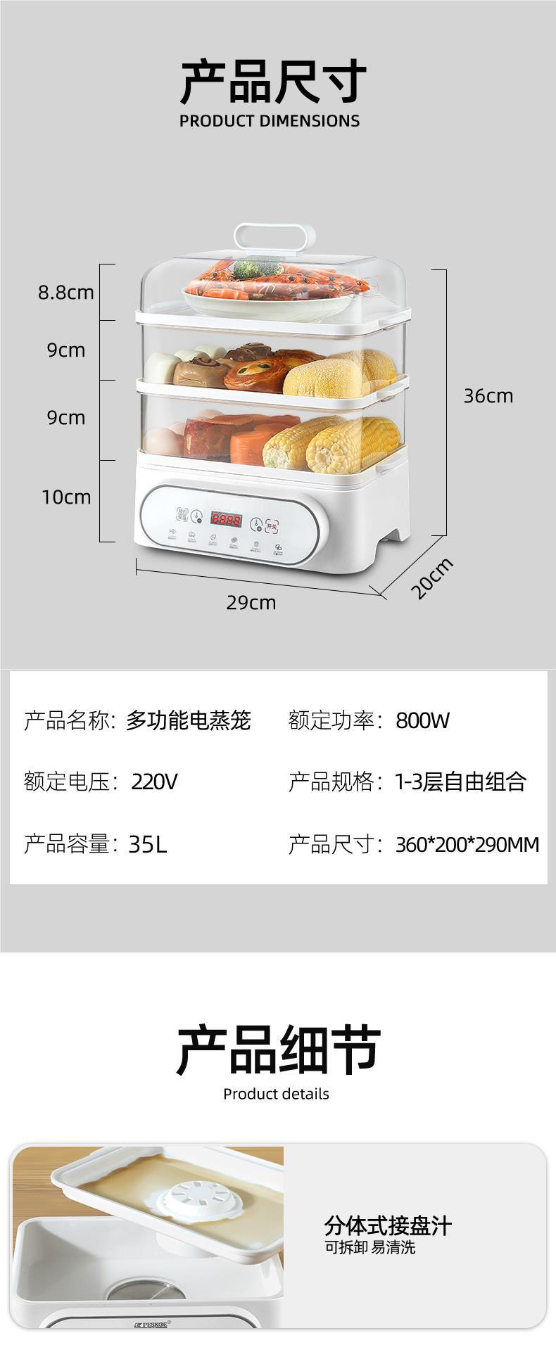 스마트 전기 증기선 가정용 대용량 다기능 전기 증기선 예약 주방 아침 식사 기계 3 층 스테인레스 스틸스토어 가기