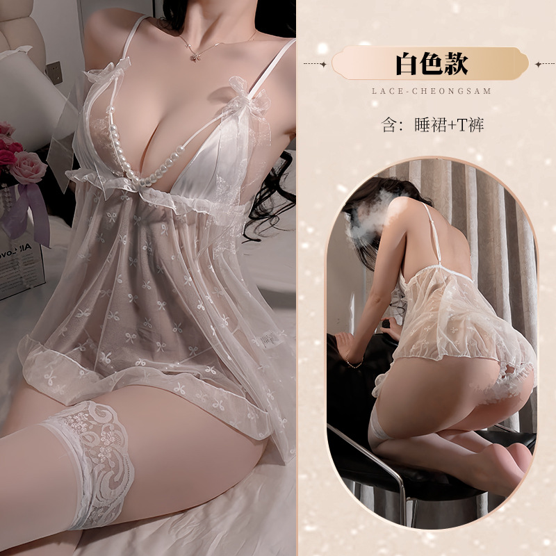 섹시한 슬링 슬링 나이트가운 진주 오픈 크로트 투명 유혹 섹시한 이륙-무료 속옷 침대 이륙 파자마 2112스토어 가기