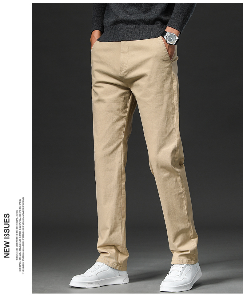 가을용 두꺼운 능직면 캐주얼 팬츠 남성 슬림핏 스몰 스트레이트 2025 신상 남성 바지 다용도 롱 팬츠
