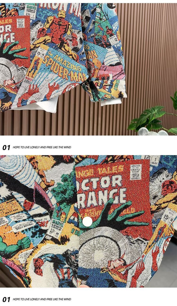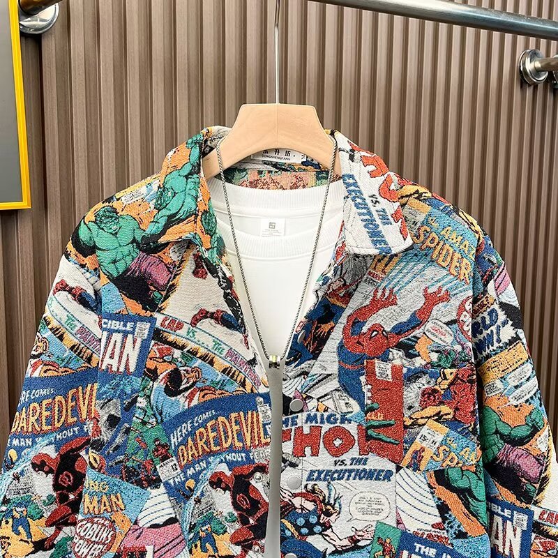 2024 자카드 긴 소매 셔츠 일본 스타일 홍콩 스타일 Ins 느슨한 셔츠 소년 여름 유행 올 매치 캐주얼 자켓