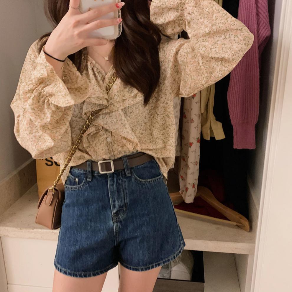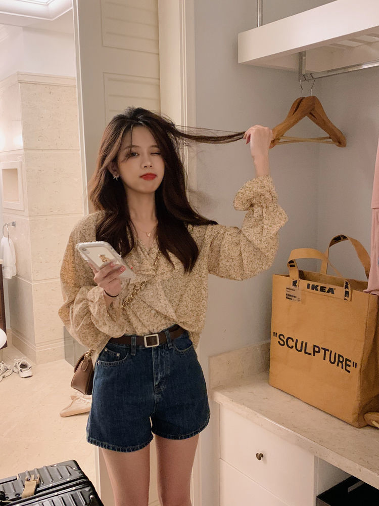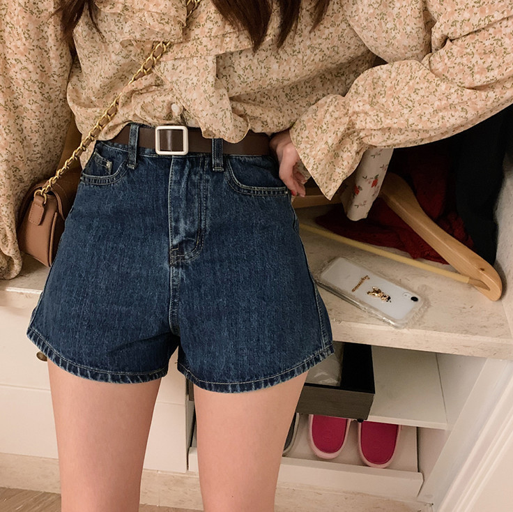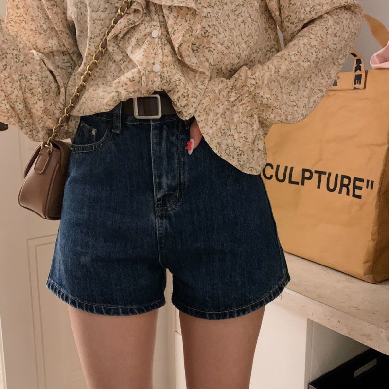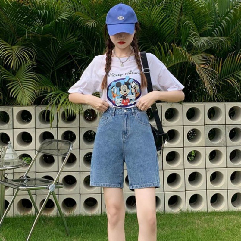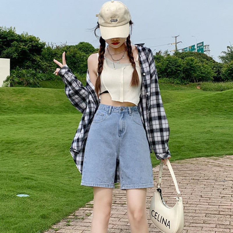데님 반바지 여자 여름 하라주쿠 스타일 솔리드 컬러 핫 바지 여자 올 매치 바지 2024 여성을위한 새로운 하이 허리 데님 반바지스토어 가기
