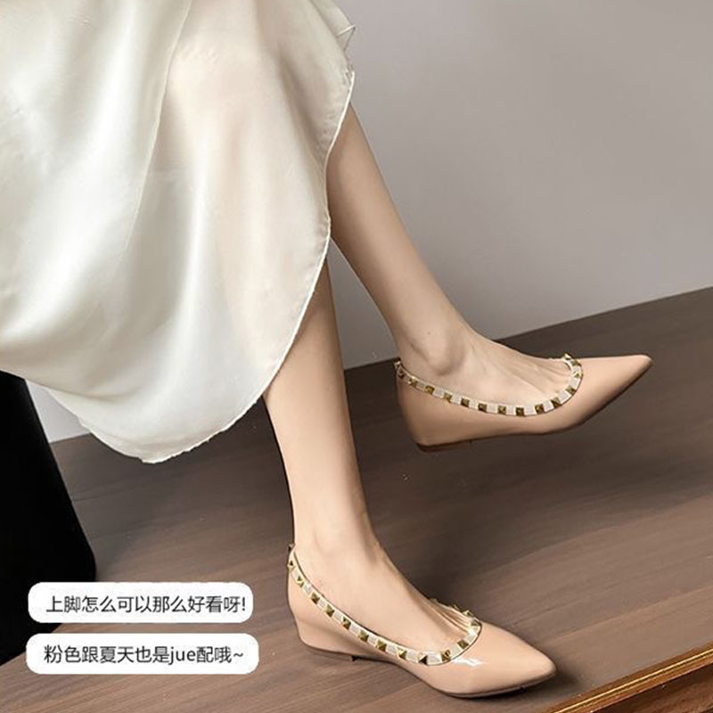 뾰족한 리벳 싱글 레이어 신발 여성 프랑스 스타일의 우아한 특허 가죽 의류 Liu Ding 펌프 늦은 밤 부드러운 누드 플랫 신발
