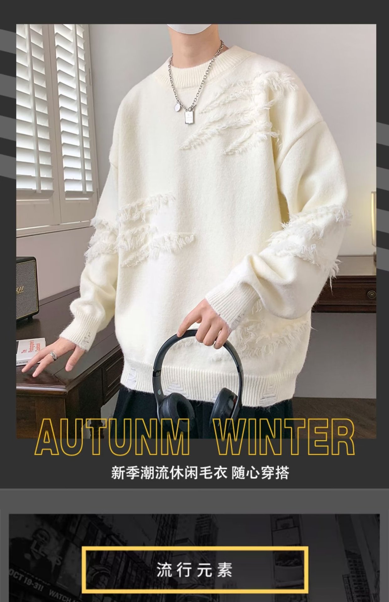 새로운 틈새 캐주얼 스타일 솔리드 컬러 스웨터 남자 가을 및 겨울 틈새 캐주얼 루즈 올 매치 스웨터 커플 탑스토어 가기