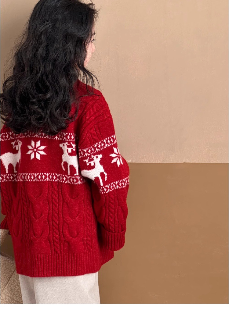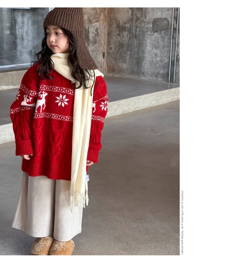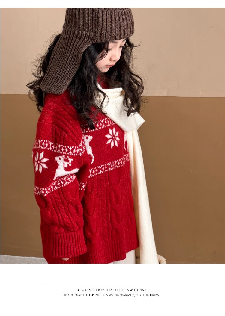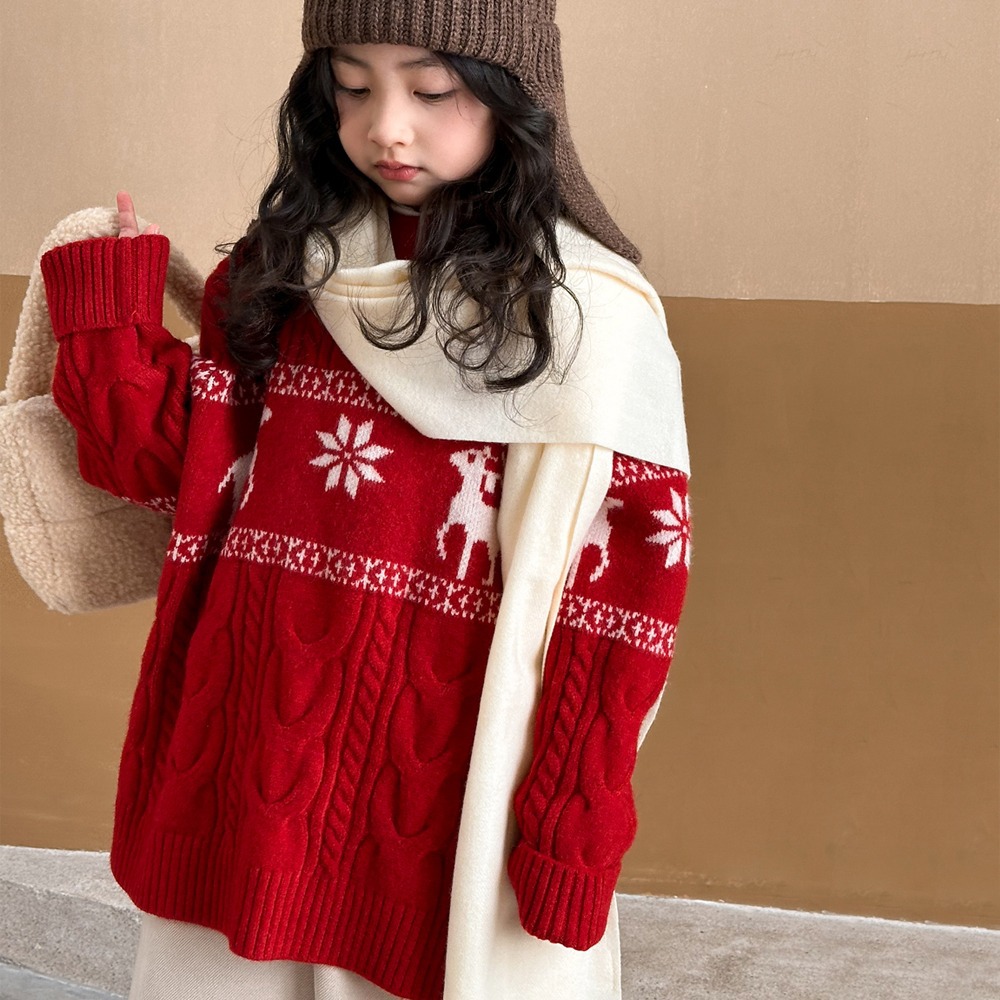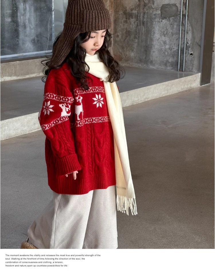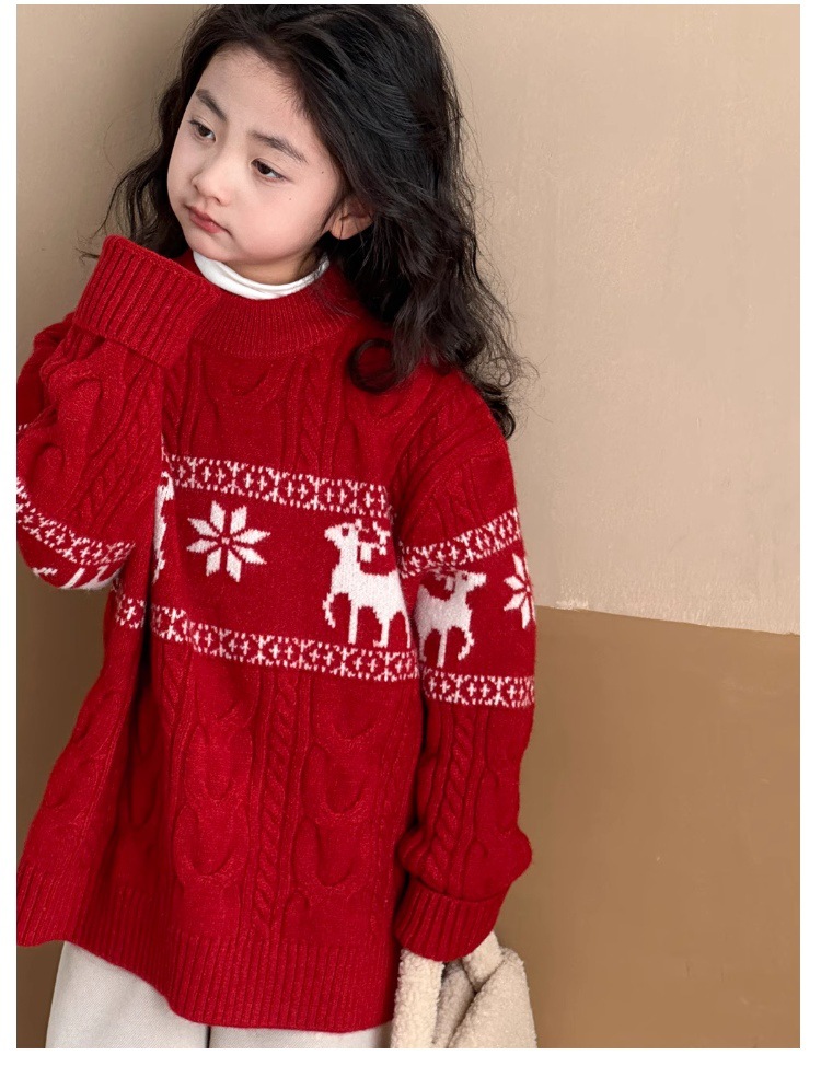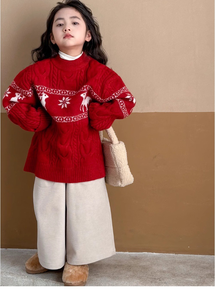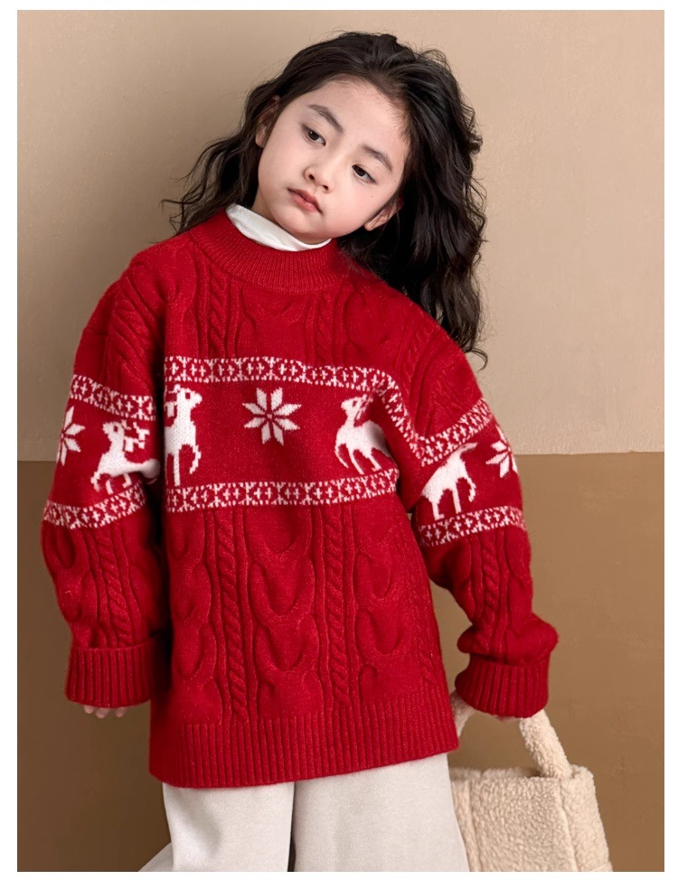 소녀 스웨터 겨울 어린이 붉은 새해 옷 서양식 어린이 니트웨어 큰 어린이 크리스마스 풀오버 탑