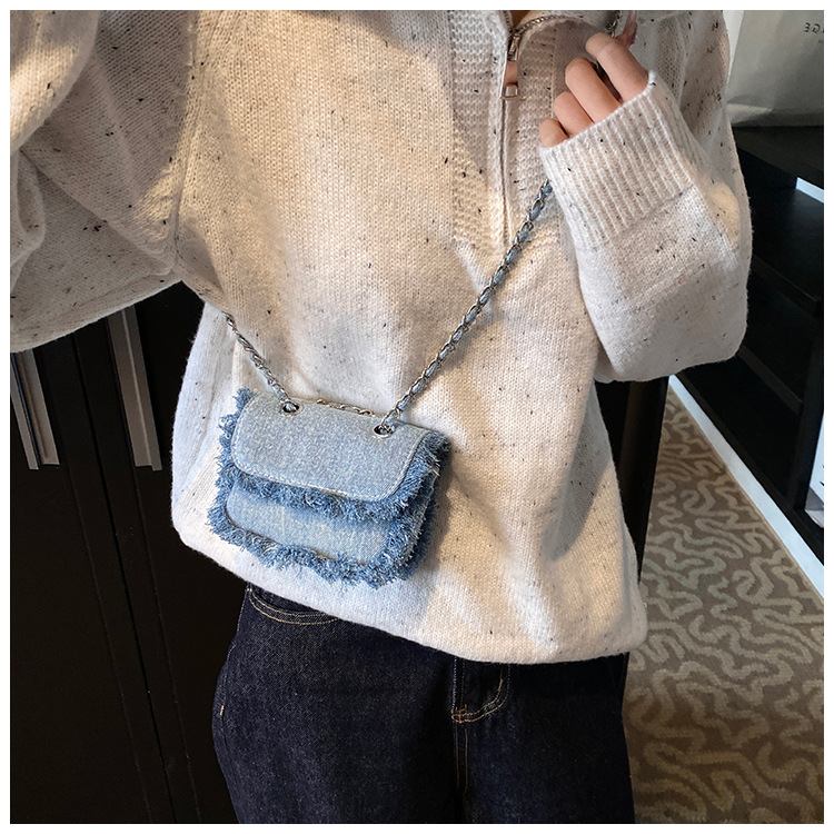 새로운 어린이 가방 유행 데님 램프 크로스 바디 백 소년과 소녀 한국식 미니 아기의 변화 휴대 전화 가방