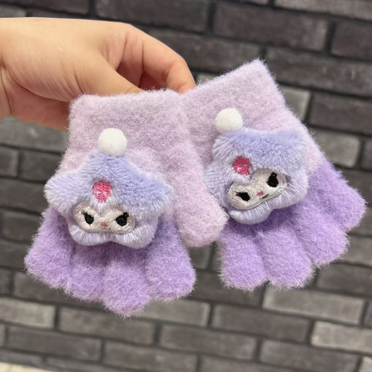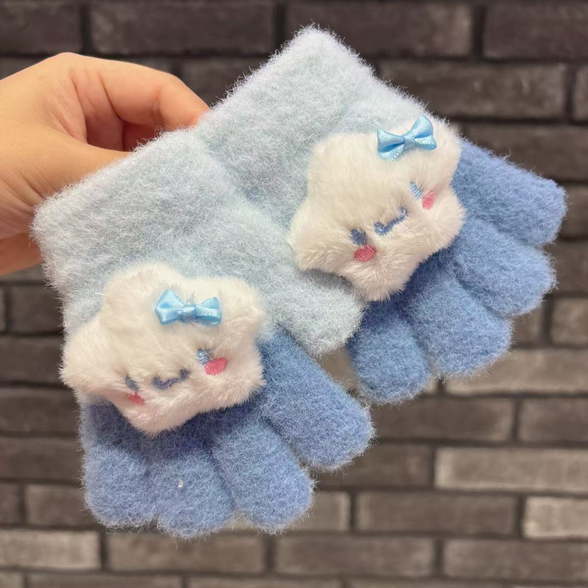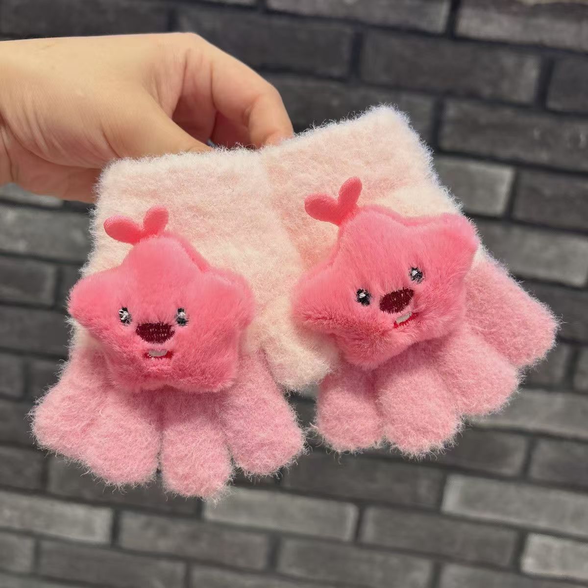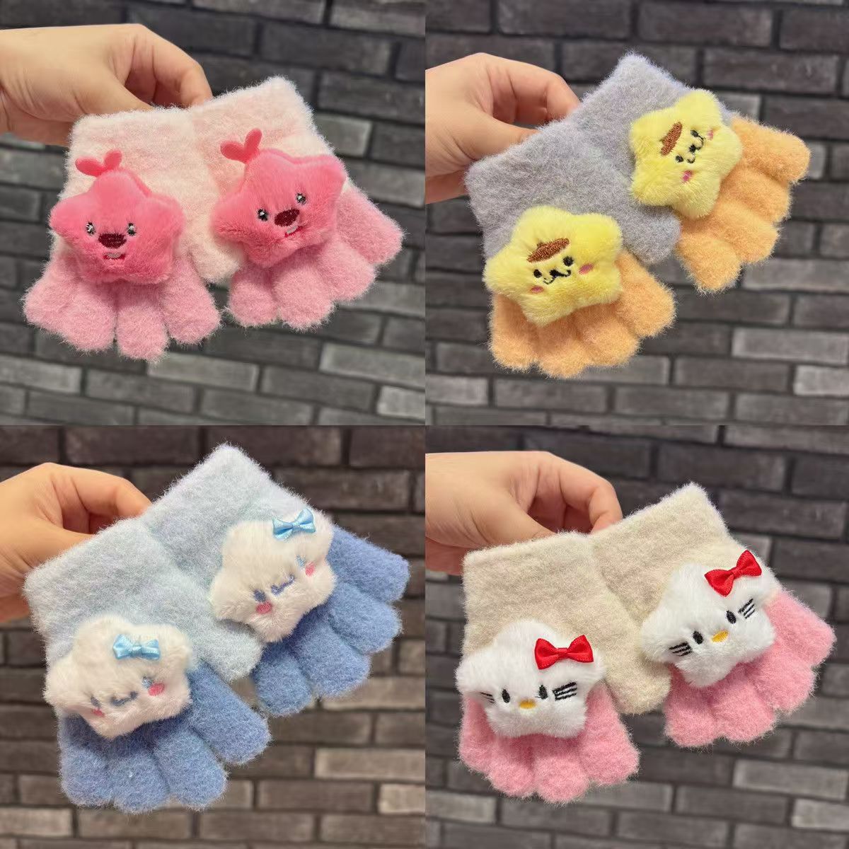 어린이 작은 장갑 귀여운 만화 두꺼운 방풍 소년과 소녀 가을과 겨울 따뜻한 봉제 5 손가락 세트