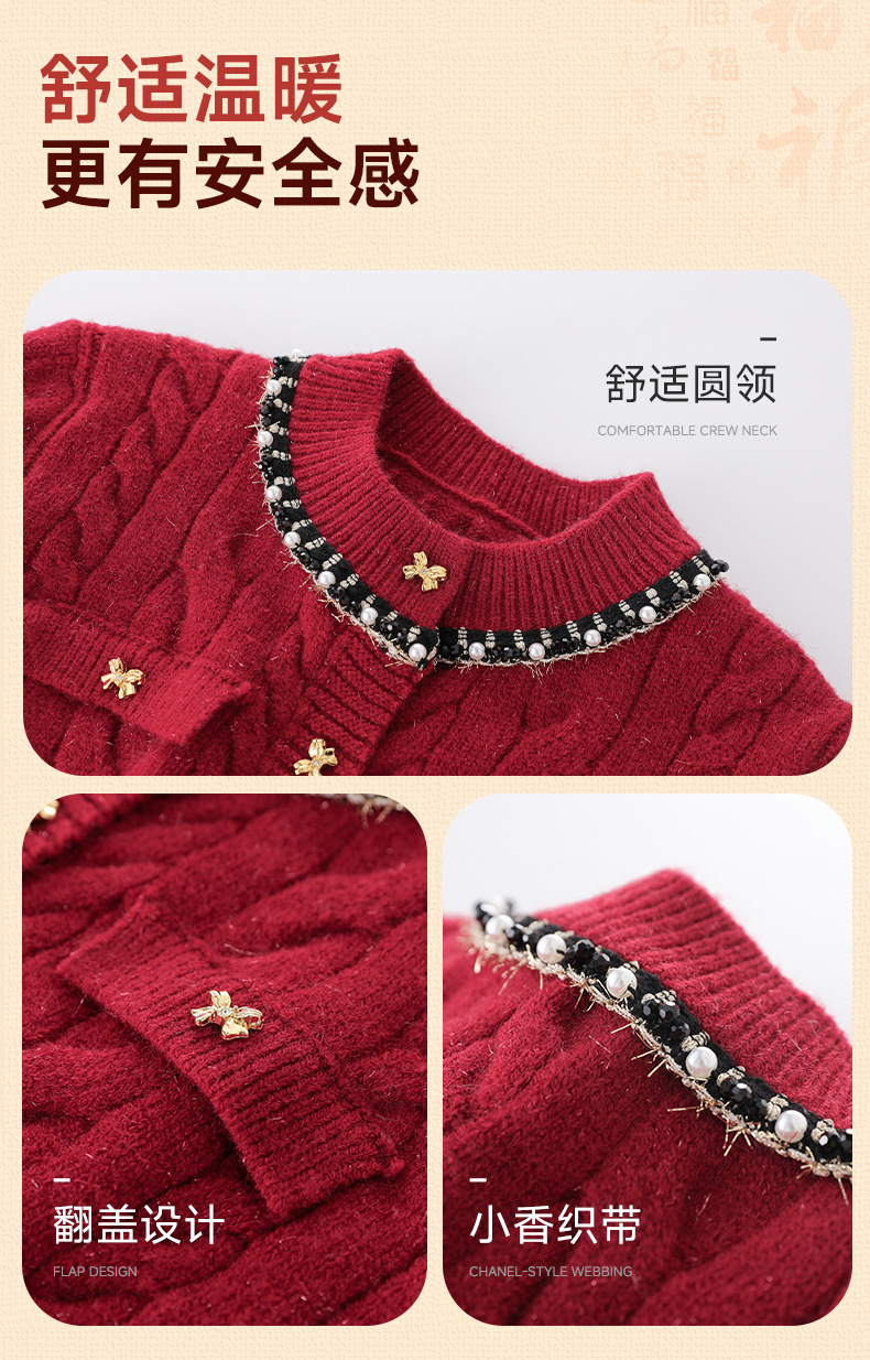 Yuanyuan Princess 2024 겨울 새로운 두꺼운 소녀 귀여운 아기 착용 스웨터 카디건 아동복 재킷 도매