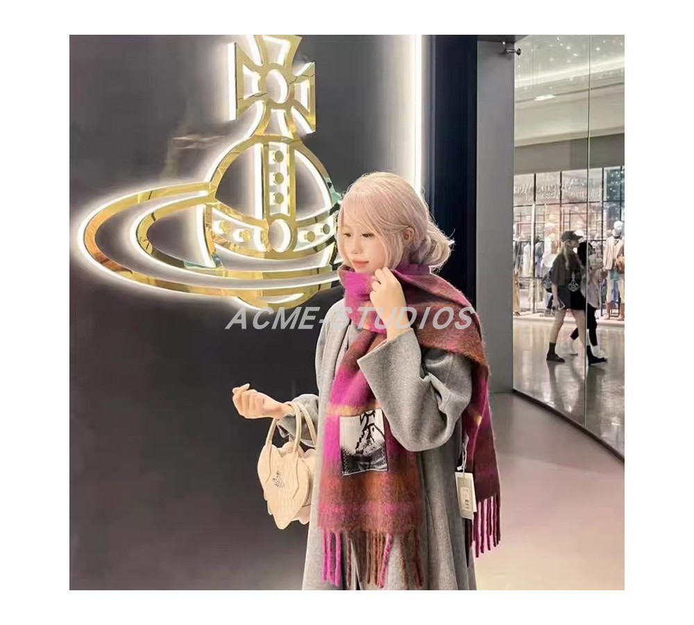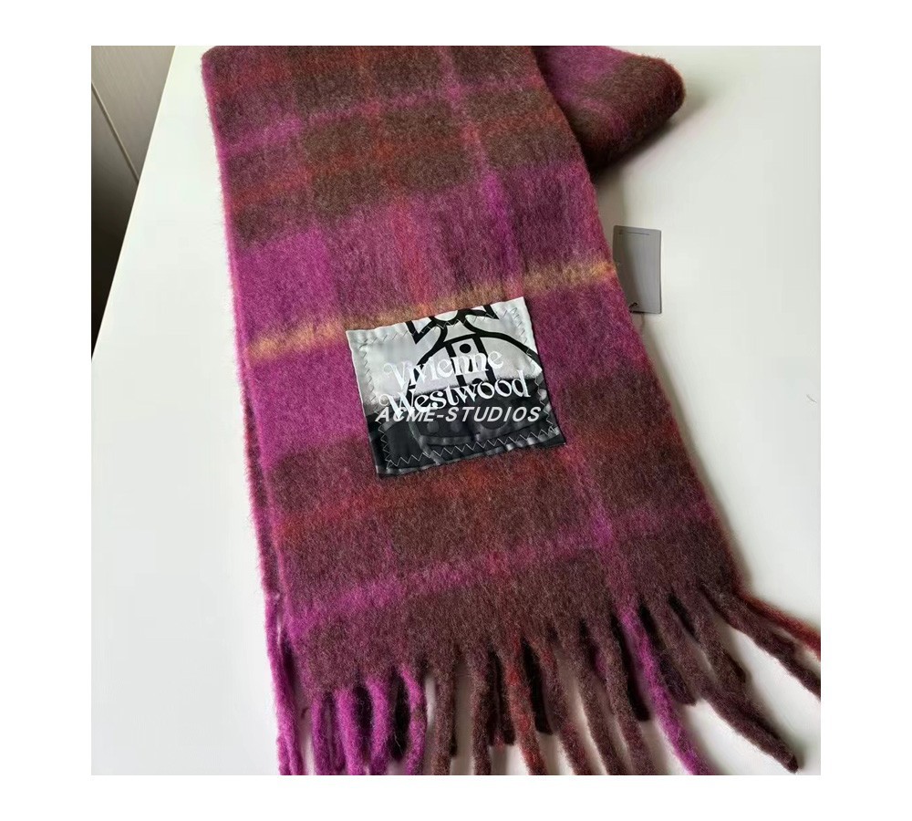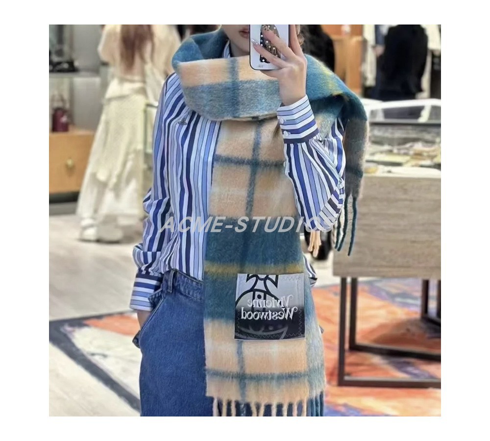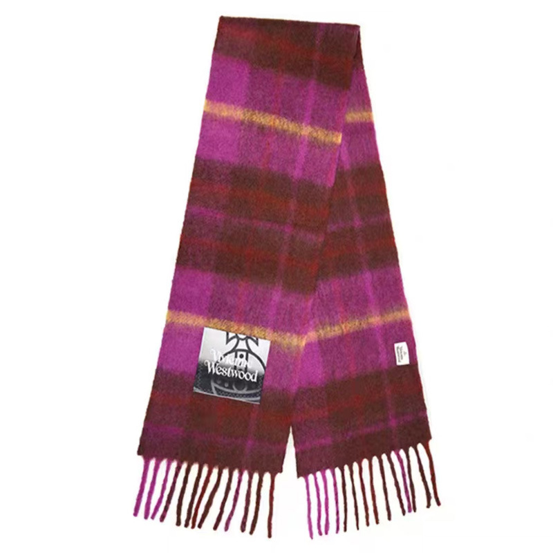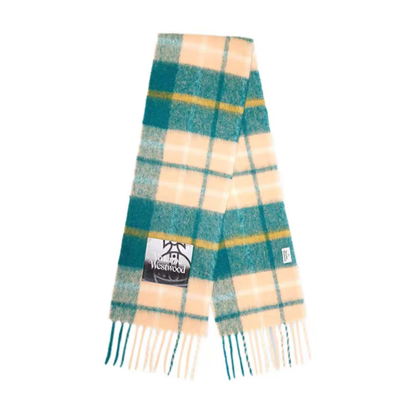 품질 서양 여왕 어머니 스카프 겨울 하이 엔드 비비안 토성 울 캐시미어 니트 따뜻한 격자 무늬 스카프 여성스토어 가기