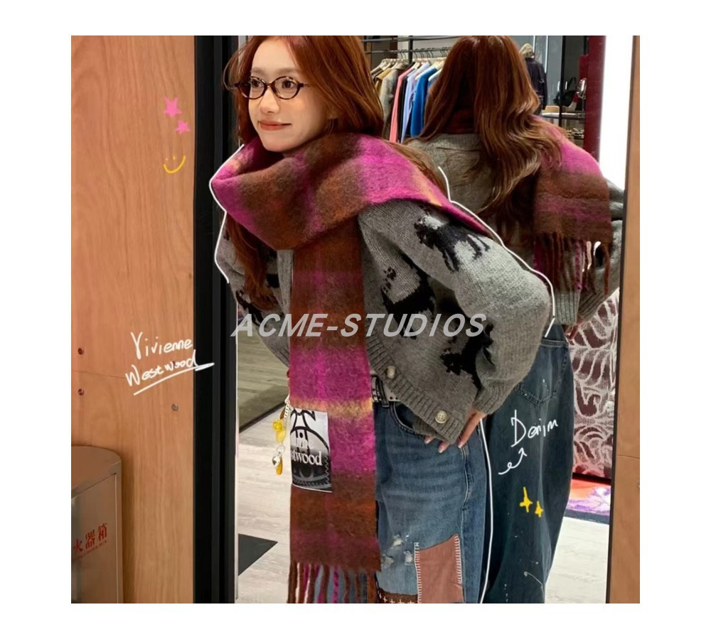 품질 서양 여왕 어머니 스카프 겨울 하이 엔드 비비안 토성 울 캐시미어 니트 따뜻한 격자 무늬 스카프 여성