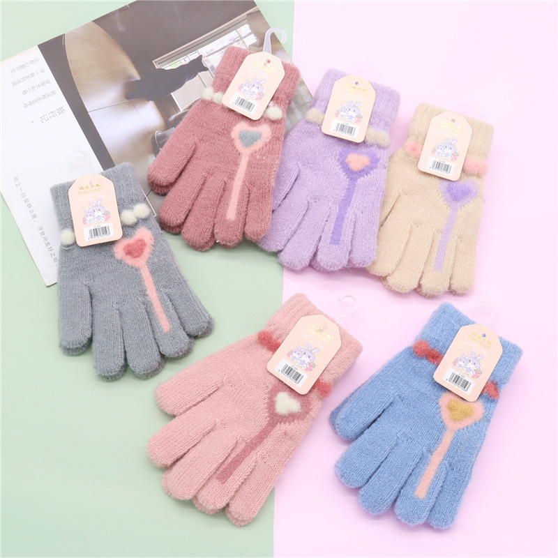 3-8 세 어린이 5 손가락 양모 장갑 도매 두꺼운 소년 소녀 올손가락 가을과 겨울 따뜻한 학생 장갑스토어 가기