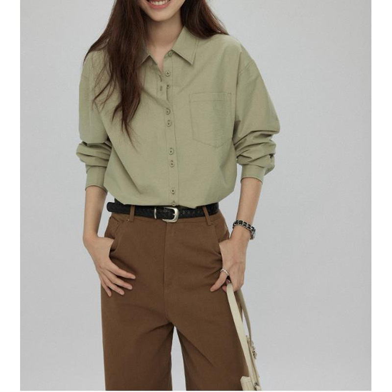 가을 느슨한 간단한 게으른 스타일 하이 엔드 올 매치 재킷을위한 여성용 긴팔 옷깃 셔츠스토어 가기