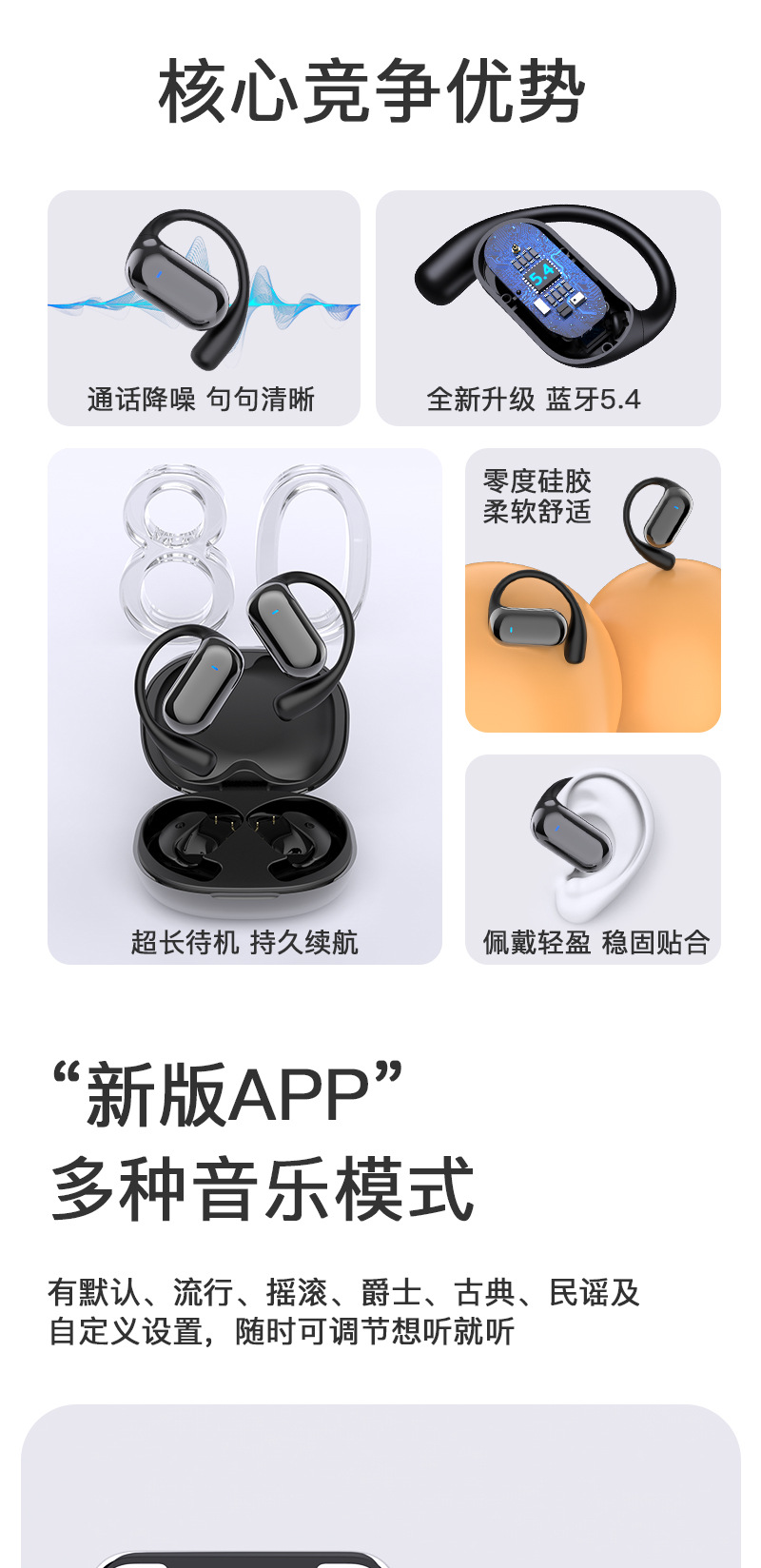 새로운 AI 스마트 번역 헤드셋 OWS 교수형 귀 무선 블루투스 헤드셋 터치 컬러 스크린 긴 내구성