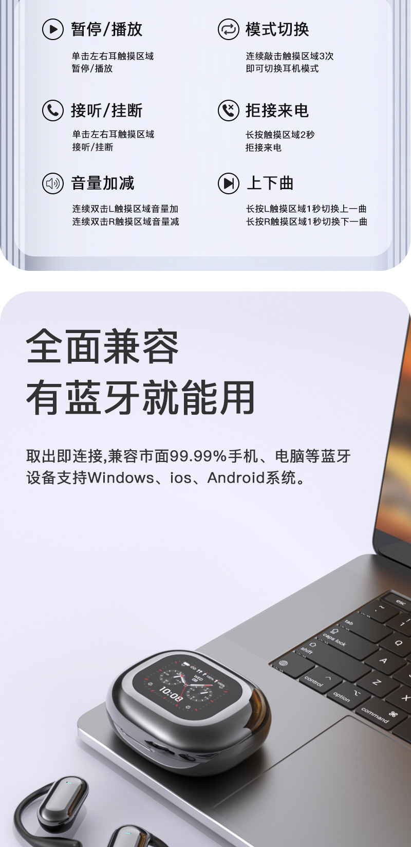 새로운 AI 스마트 번역 헤드셋 OWS 교수형 귀 무선 블루투스 헤드셋 터치 컬러 스크린 긴 내구성스토어 가기