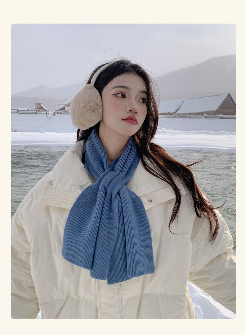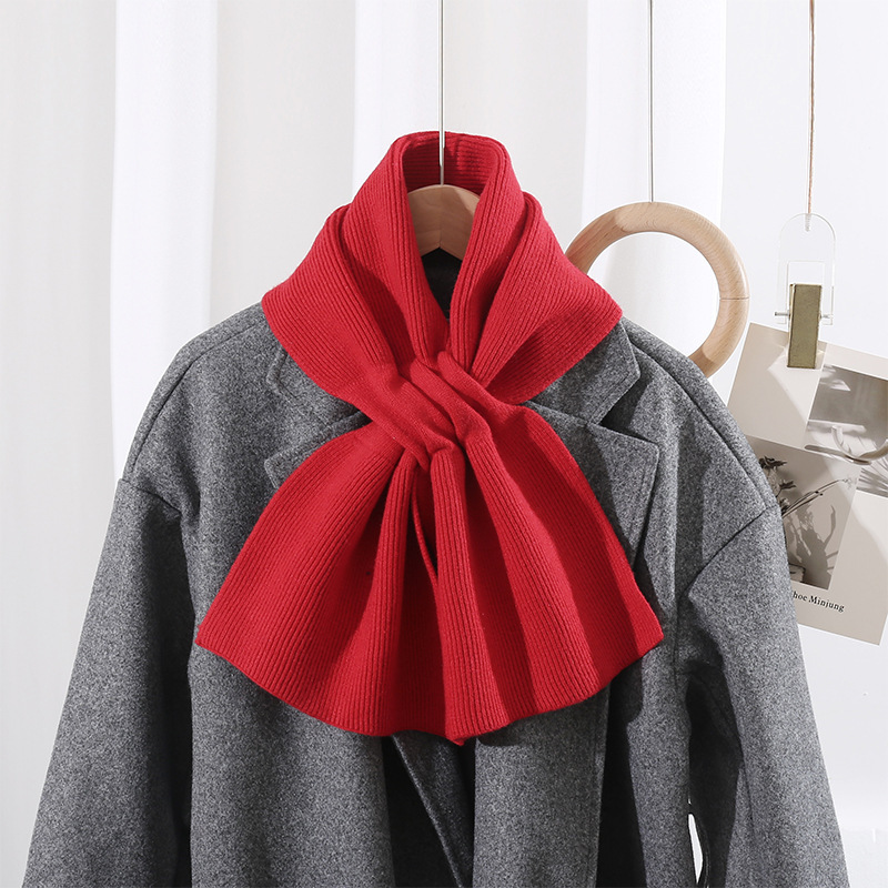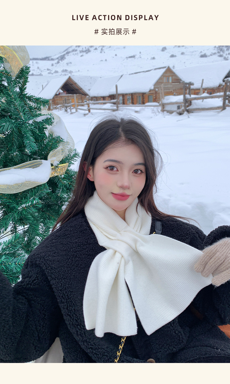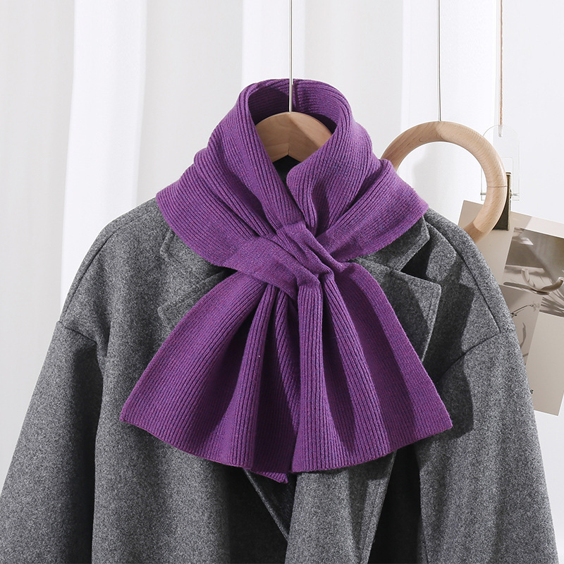 한국 스타일 짧은 우아한 다목적 쌀 화이트 그레이 니트 양모 크로스 작은 스카프 여성 목 보호 겨울 따뜻한 스카프스토어 가기