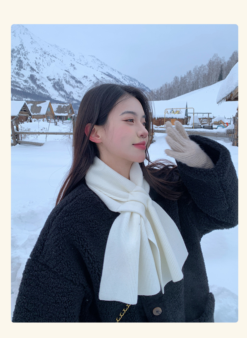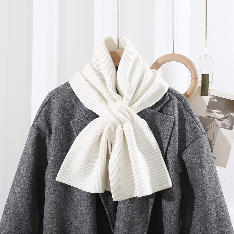 한국 스타일 짧은 우아한 다목적 쌀 화이트 그레이 니트 양모 크로스 작은 스카프 여성 목 보호 겨울 따뜻한 스카프