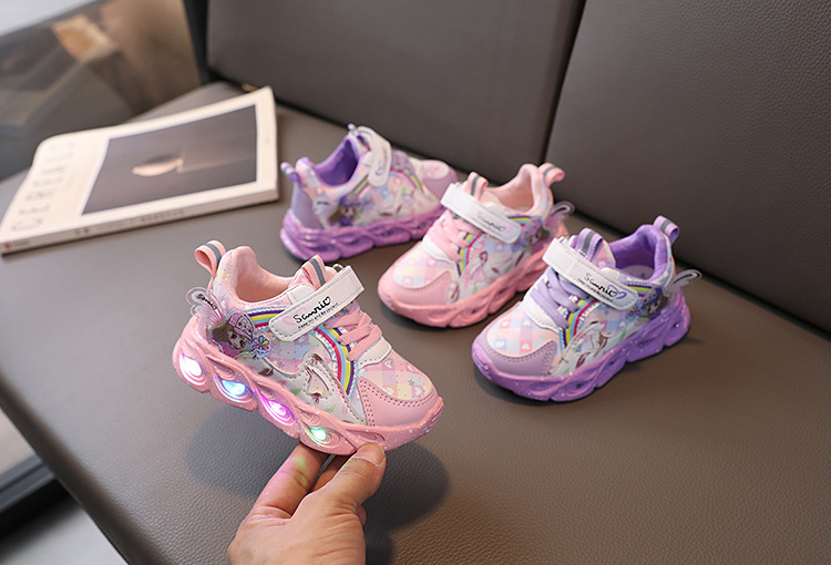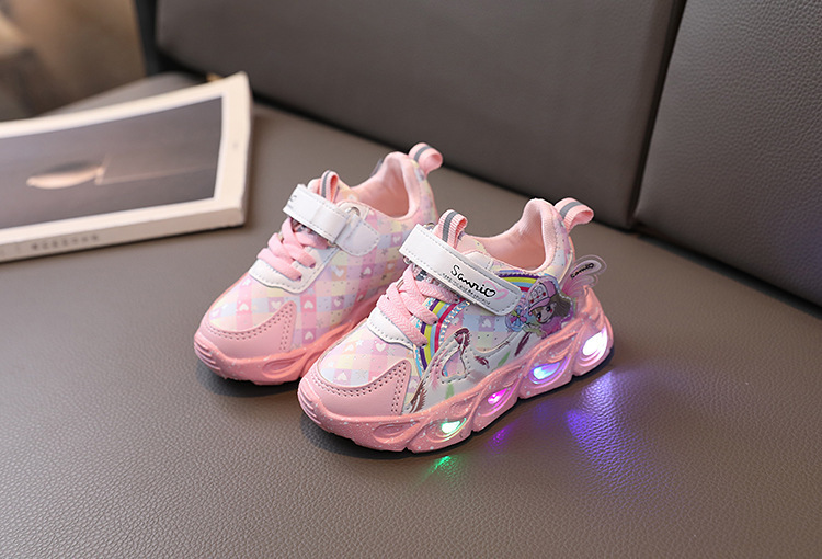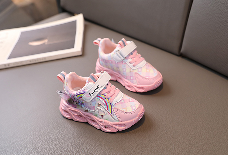2024 조명 소녀 신발 봄과 가을 새로운 가죽 캐주얼 편안한 만화 운동화 중통 공주 신발 도매스토어 가기
