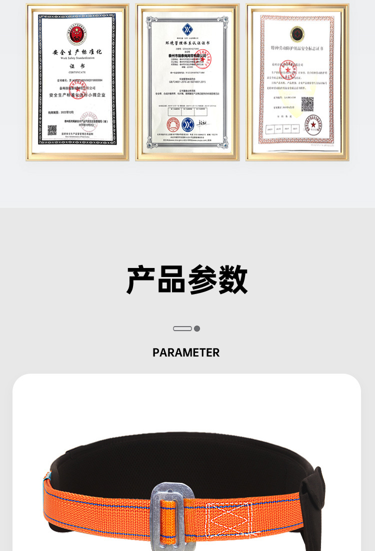 • 단일 허리 안전 벨트 3m 대형 후크(공구 가방)