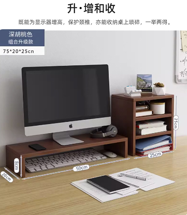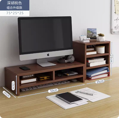 • 더블 레이어 컴퓨터 랙 + 데스크탑 스토리지 랙 조합 목재 색상