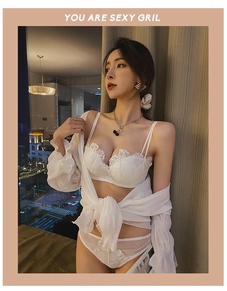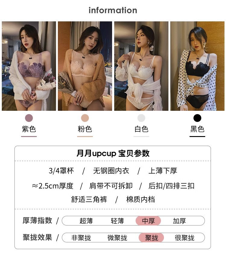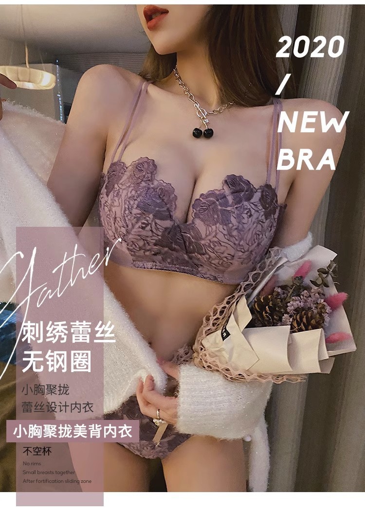 보라색 레이스 속옷 여성 모임 작은 가슴 성적인 아름다운 등 브래지어 유방 투석 안티 처짐 비 강철 반지 브래지어 세트스토어 가기