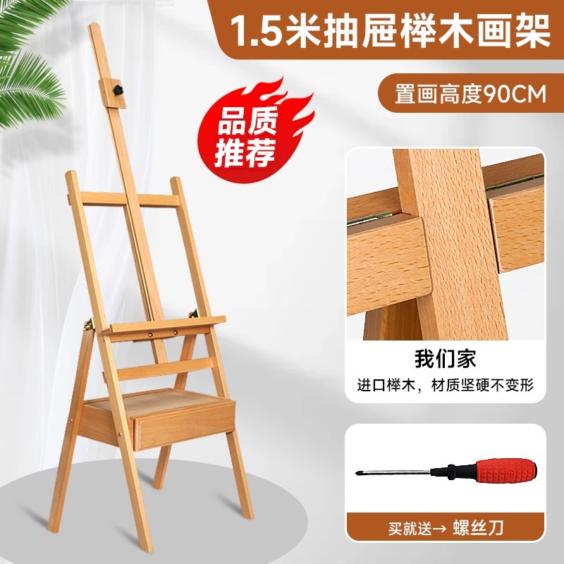 • 1.5m 너도밤나무 통나무 이젤 + 4K 솔리드 드로잉 보드 [1개 구매 시 5개 무료]