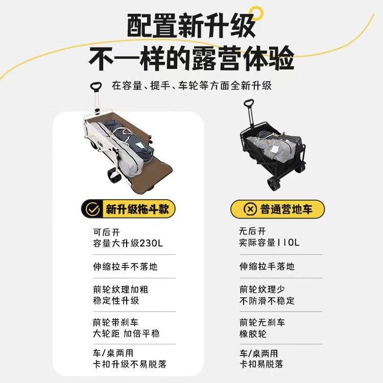 캠핑 카트 캠핑 카트 야외 캠핑 접이식 카트 캠핑 트레일러 휴대용 라이트 식료품 쇼핑 카트
