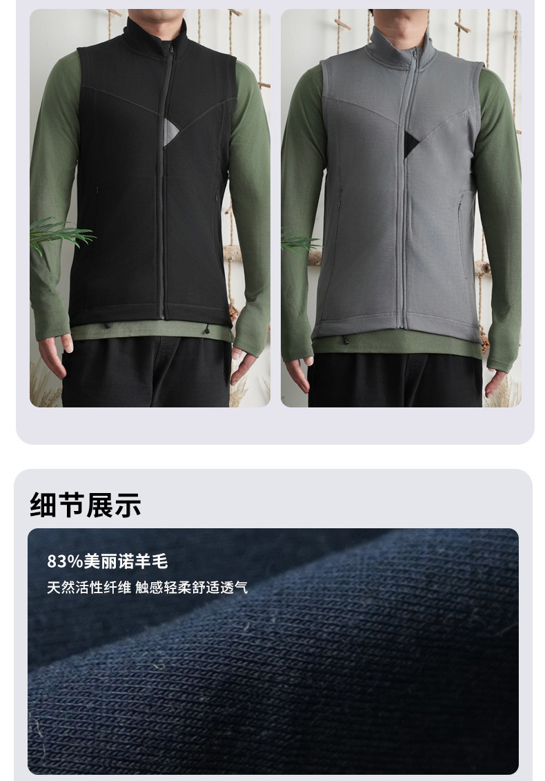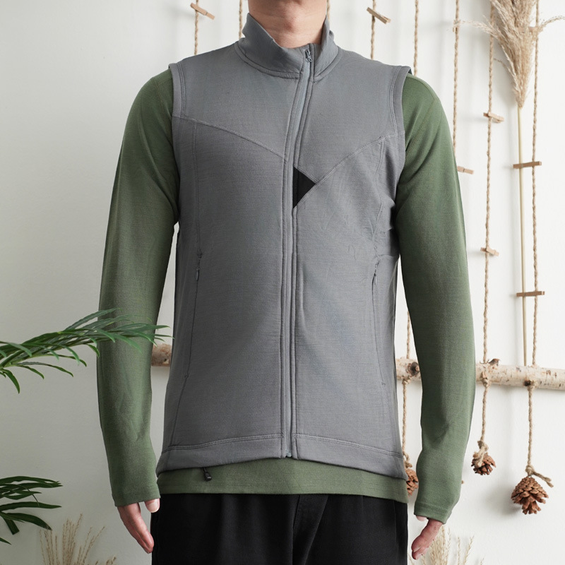그레이 쉘 야외 메리노 울 가을과 겨울 조끼 민소매 남성용 칼라 지퍼 마리노 스포츠 캐주얼