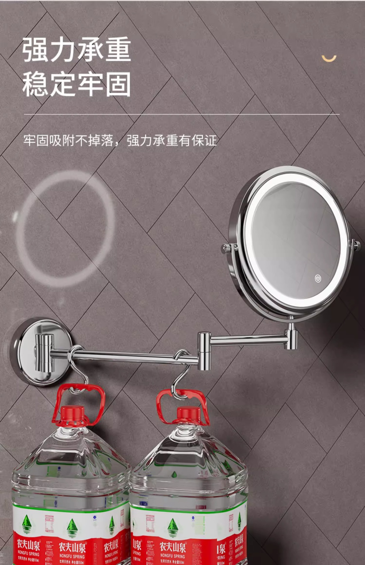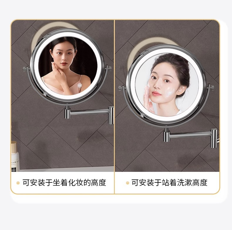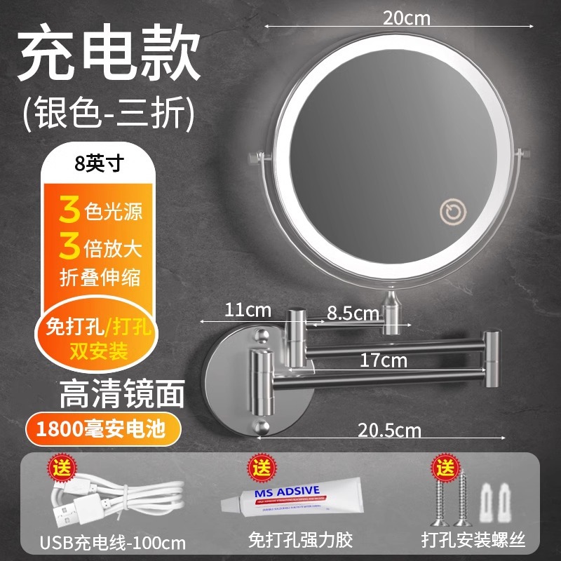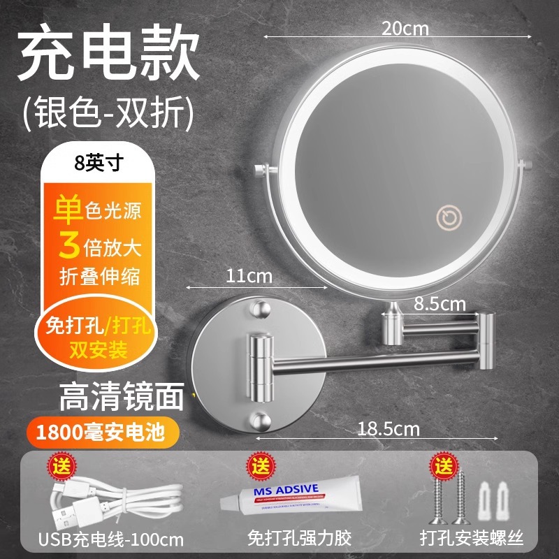 램프가있는 Led 메이크업 미러 욕실 구멍없는 돋보기 호텔 텔레스코픽 접이식 벽 매달린 뷰티 미러