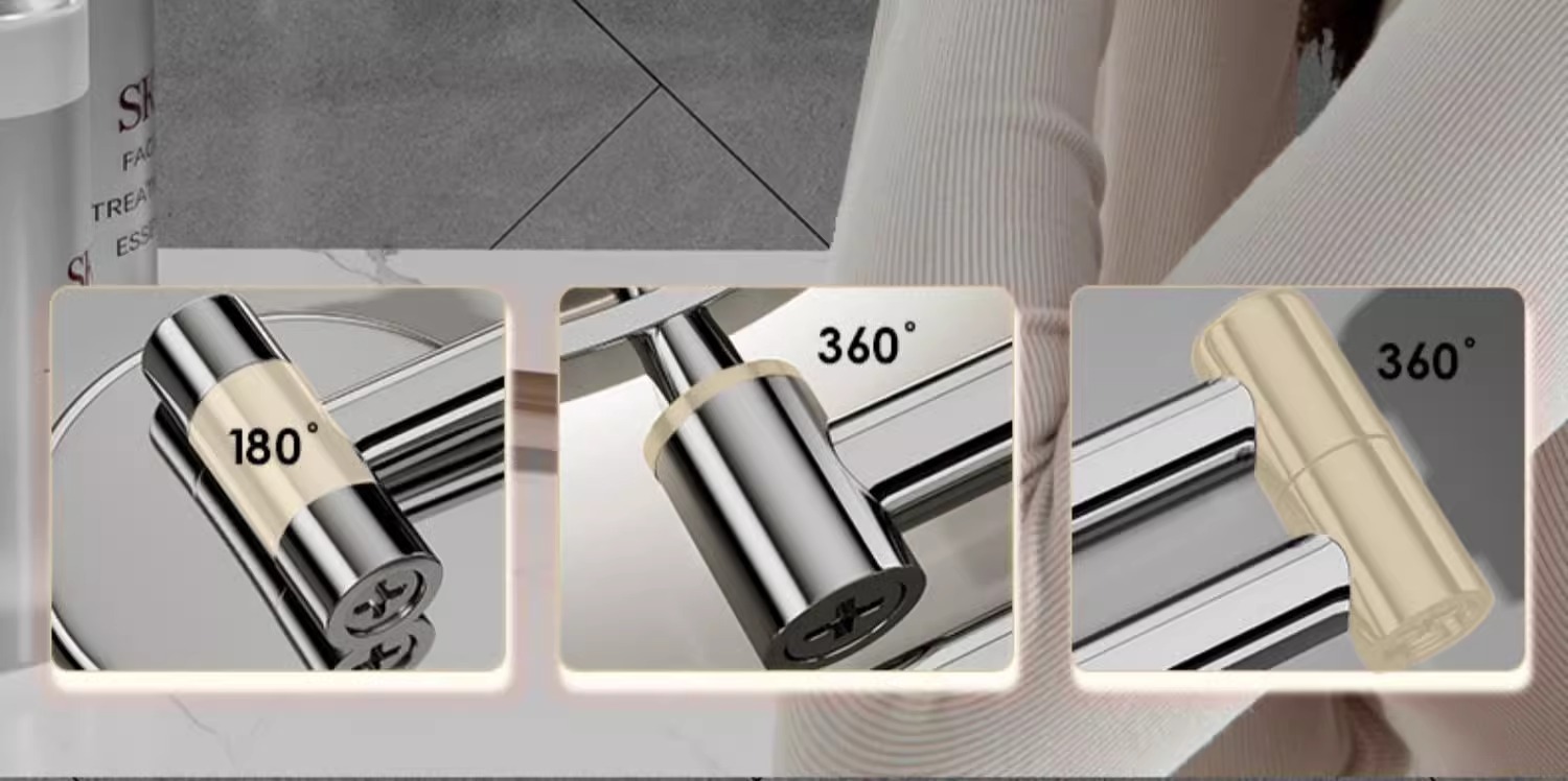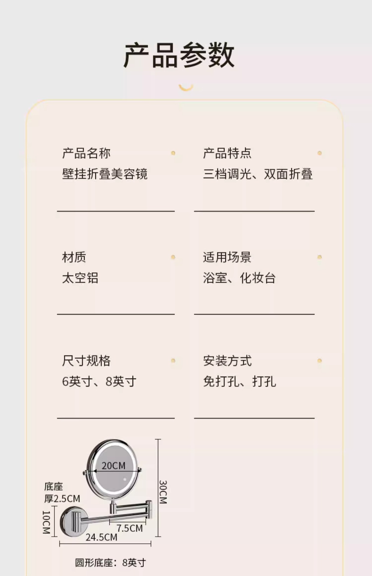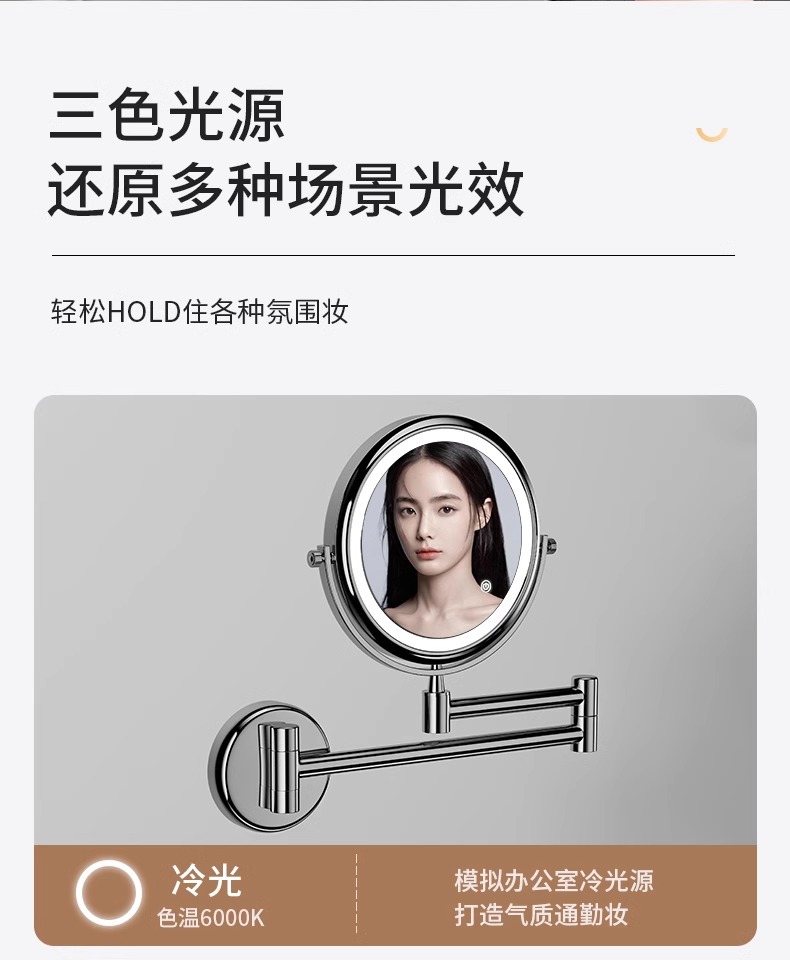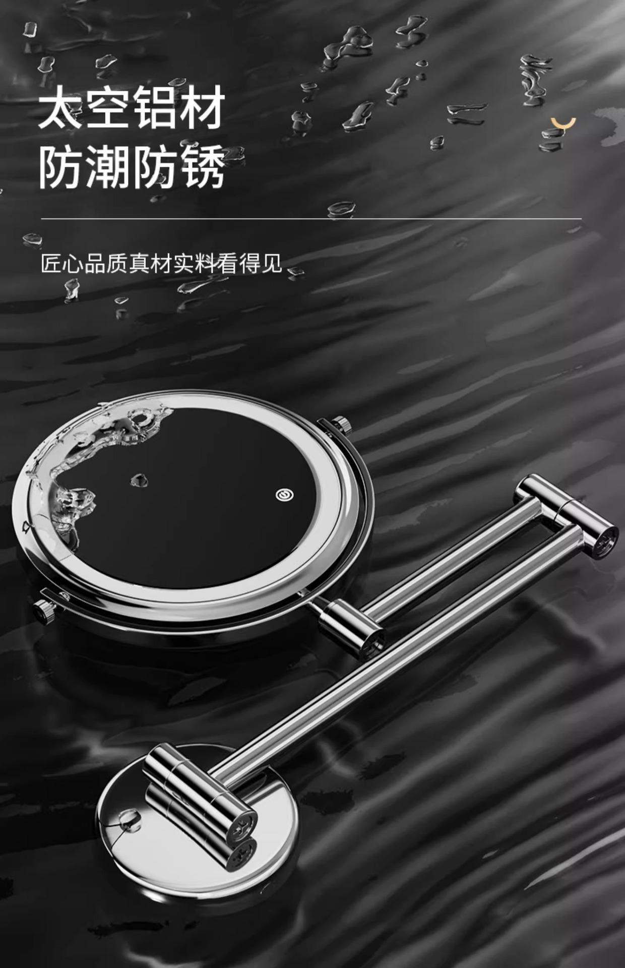 램프가있는 Led 메이크업 미러 욕실 구멍없는 돋보기 호텔 텔레스코픽 접이식 벽 매달린 뷰티 미러