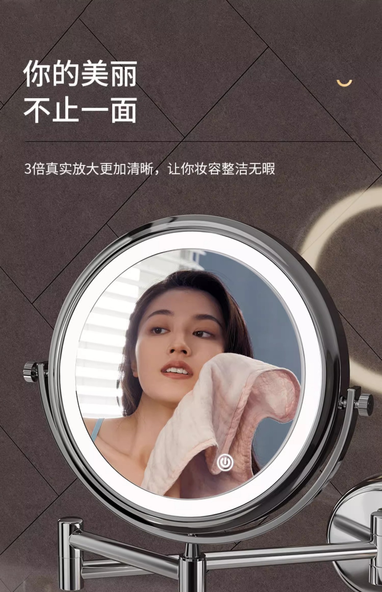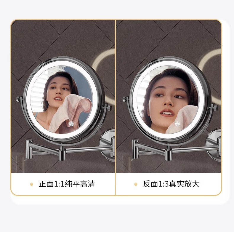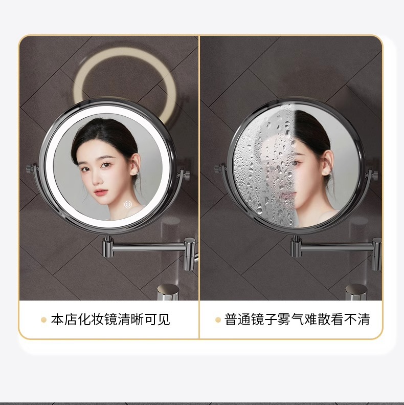 램프가있는 Led 메이크업 미러 욕실 구멍없는 돋보기 호텔 텔레스코픽 접이식 벽 매달린 뷰티 미러스토어 가기