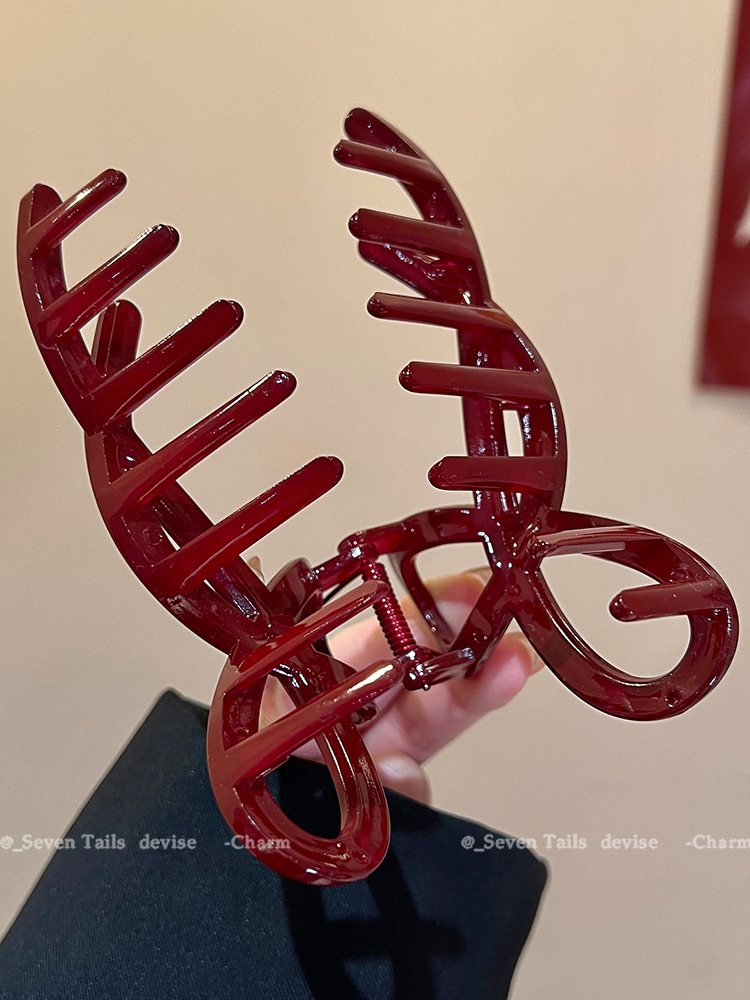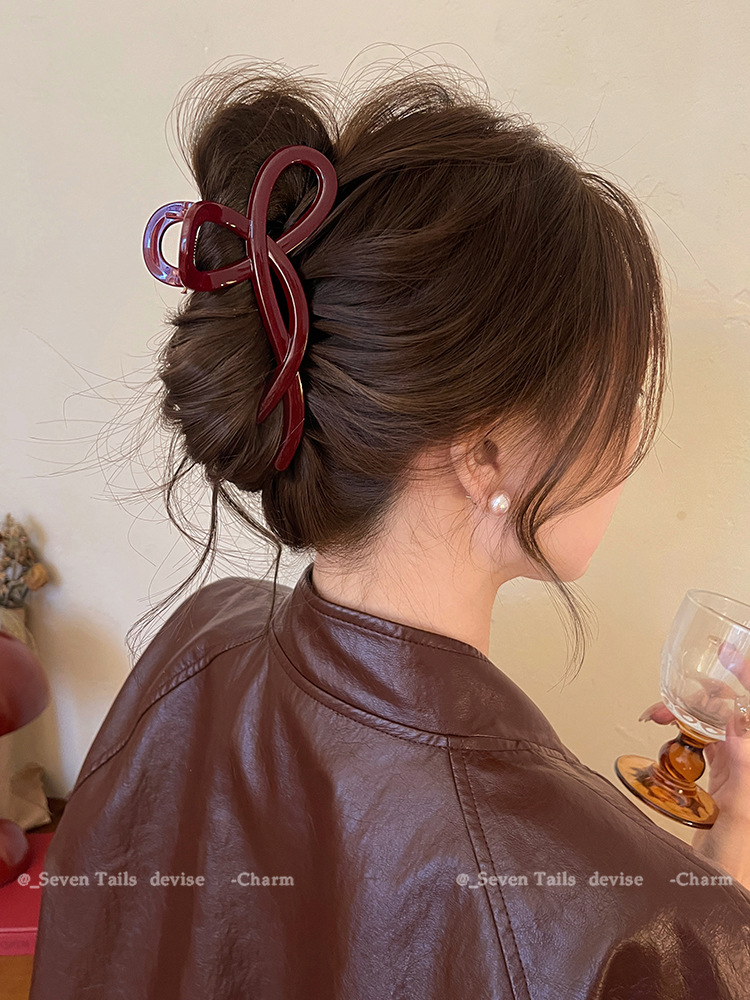 안콜라 레드 활 그랩 클립 여성용 겨울 한국 스타일 리본 헤어핀 머리 대형 상어 클립 헤어 액세서리스토어 가기