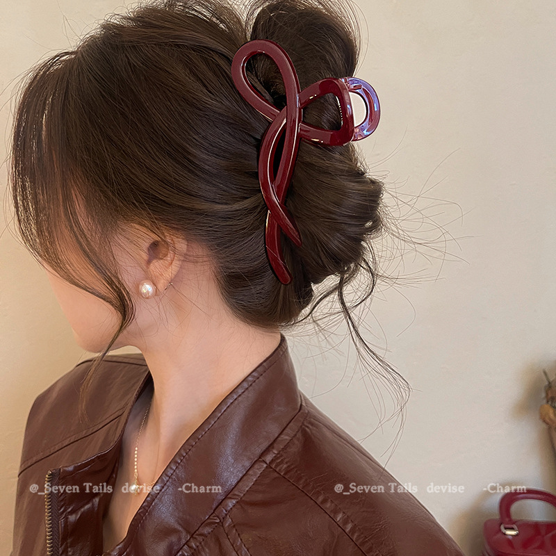 안콜라 레드 활 그랩 클립 여성용 겨울 한국 스타일 리본 헤어핀 머리 대형 상어 클립 헤어 액세서리