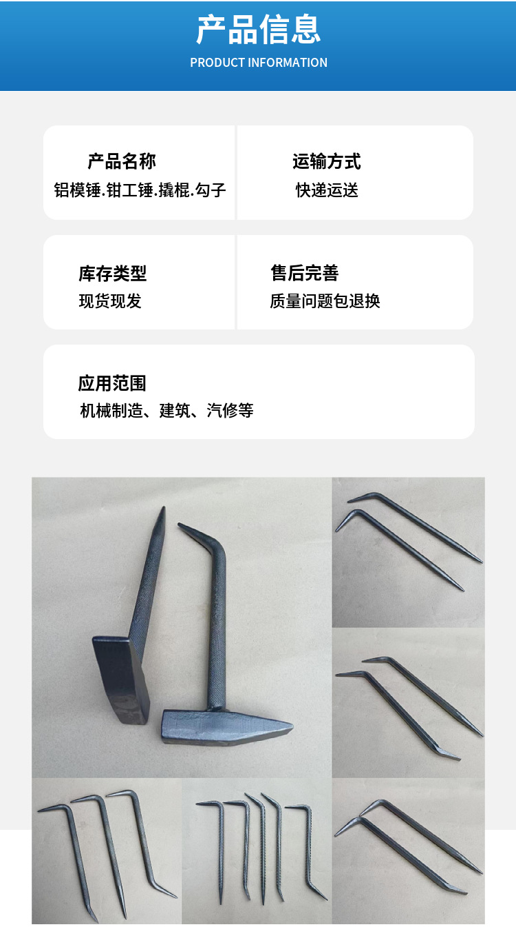 새로운 라운드 스틸 미끄럼 방지 피터 해머 루 금형 해머 알루미늄 금형 설치 도구 크로우 바 후크