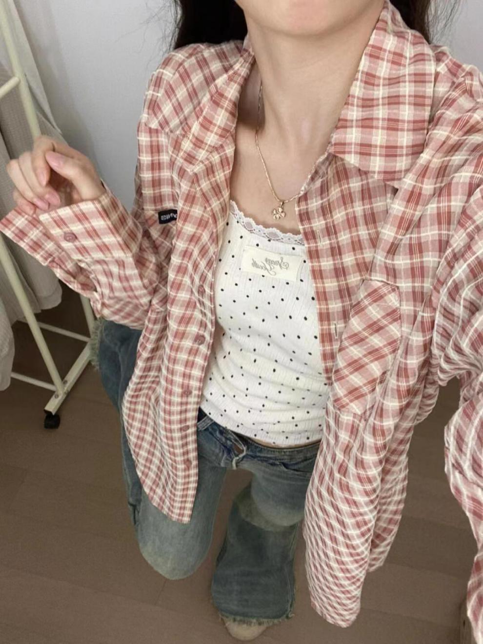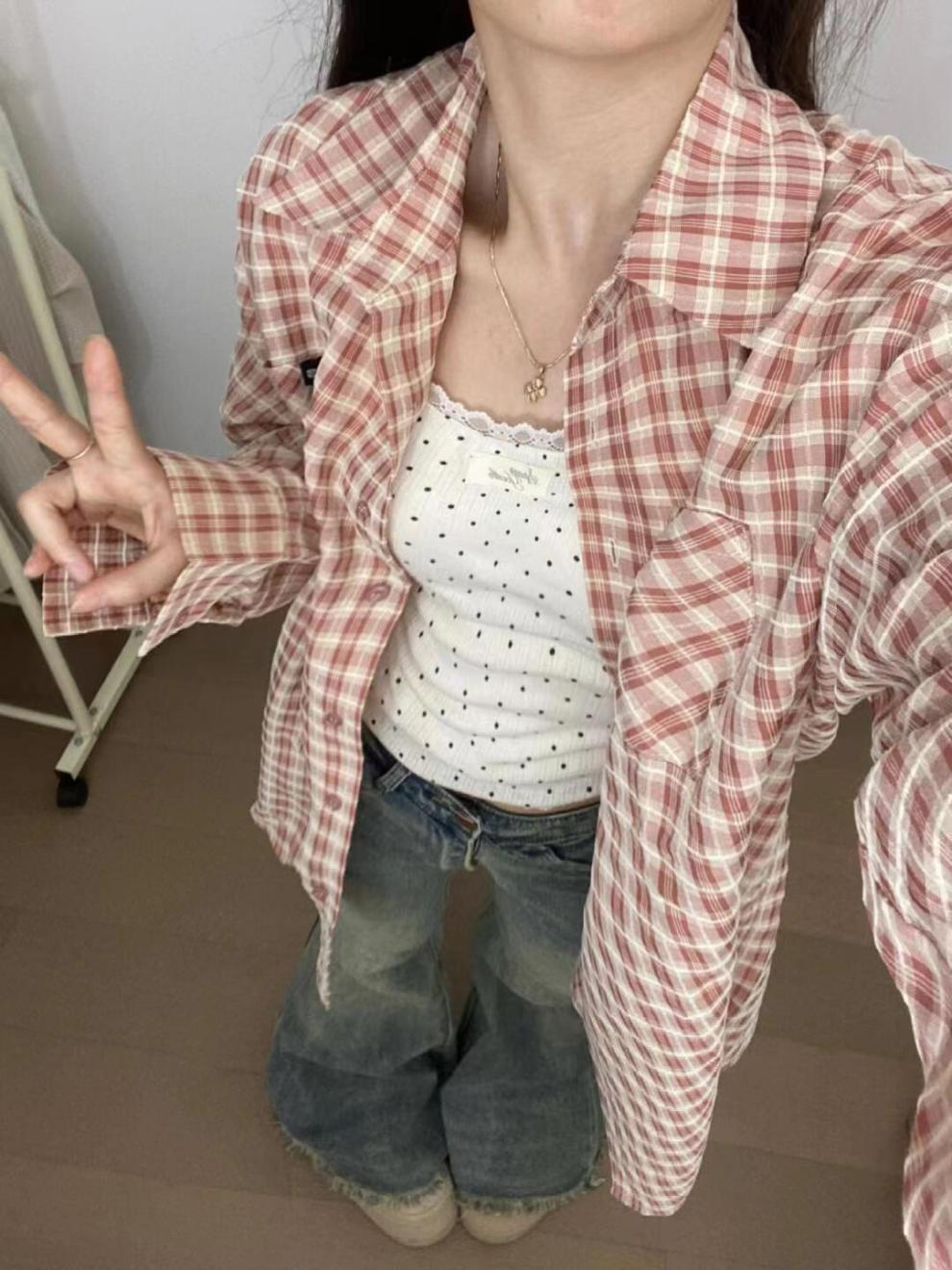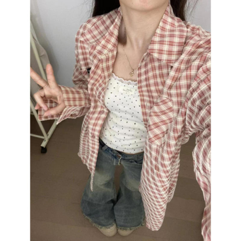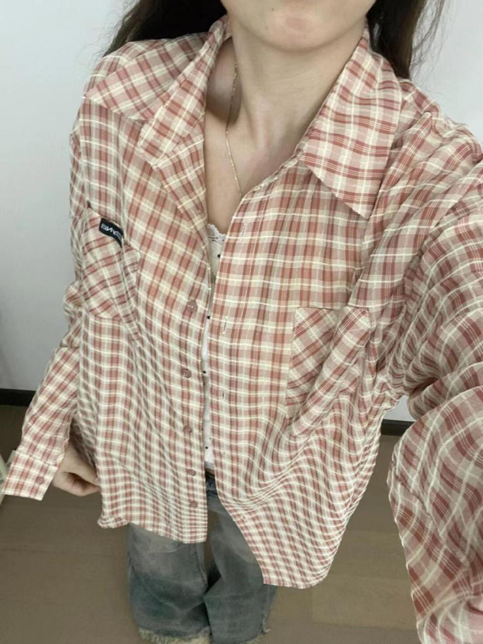 모리 스타일 오렌지 격자 무늬 셔츠 여성용 쌓인 젊은 Ins 느슨한 살포기 슬리밍 긴팔 셔츠 트렌디 한 외부 카디건스토어 가기