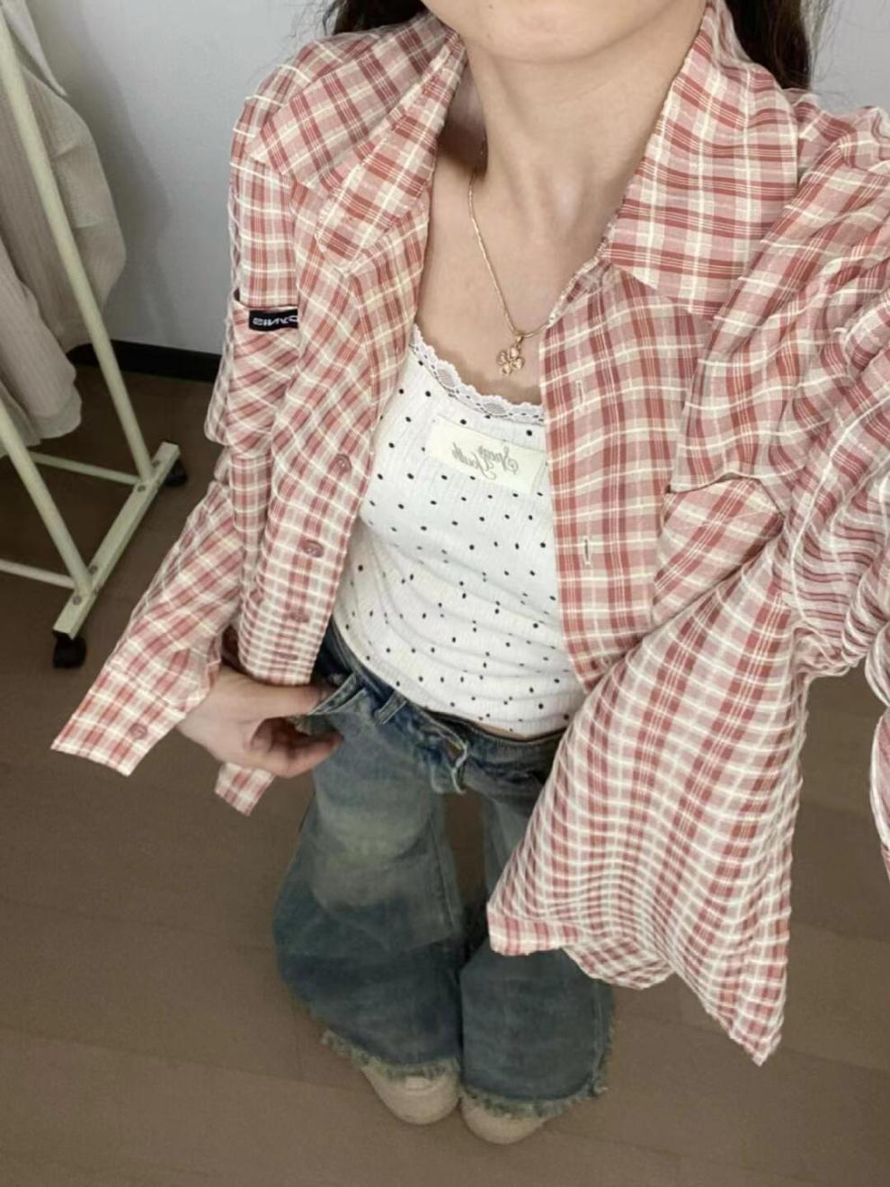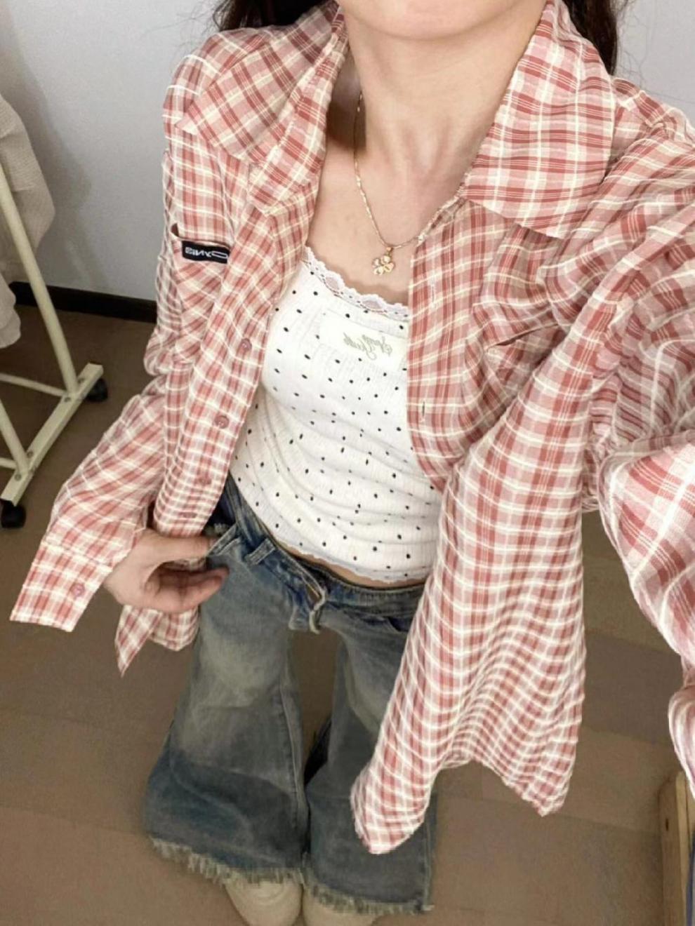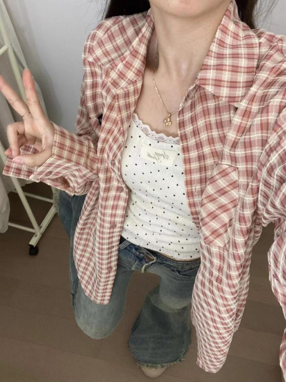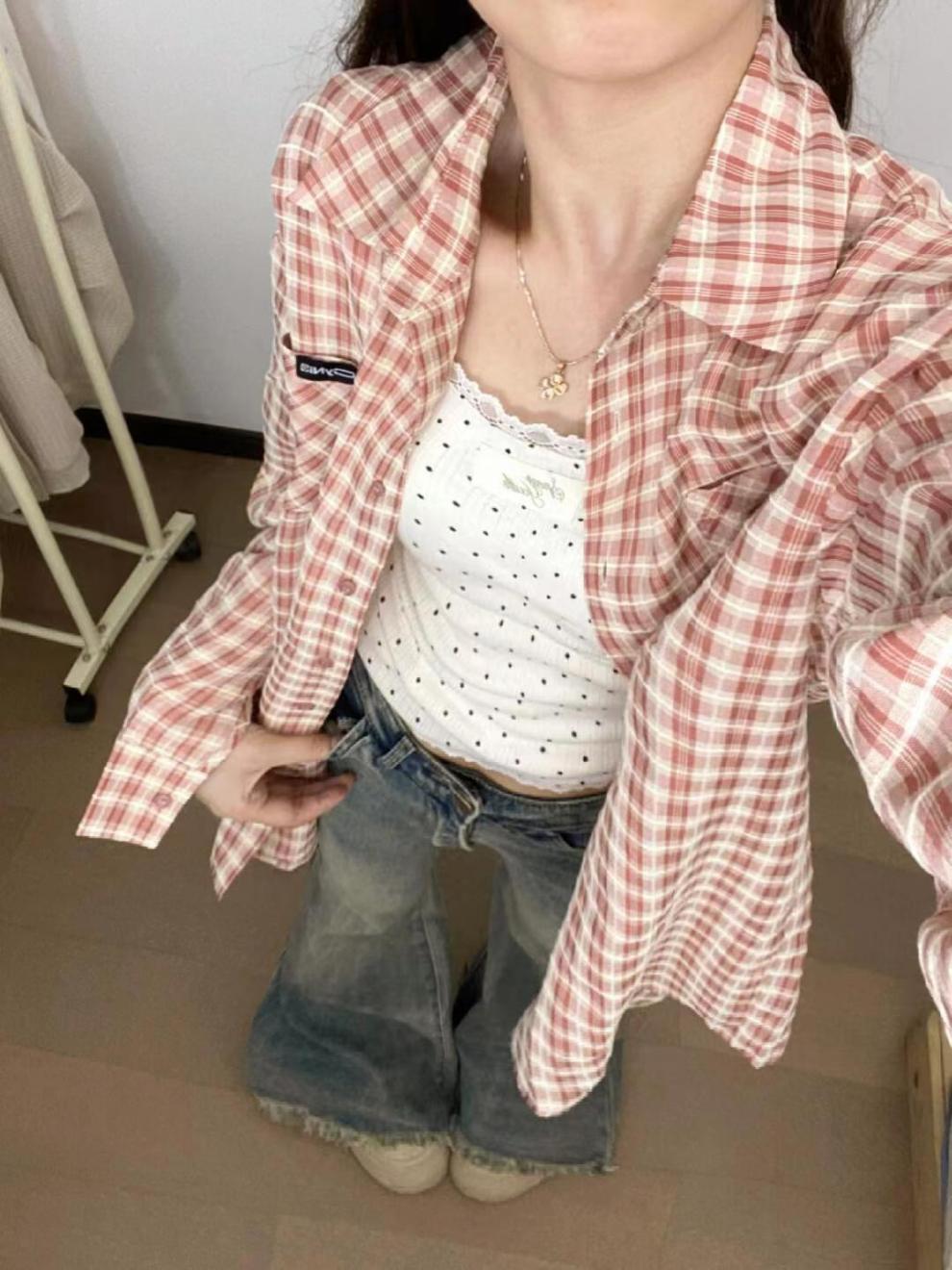 모리 스타일 오렌지 격자 무늬 셔츠 여성용 쌓인 젊은 Ins 느슨한 살포기 슬리밍 긴팔 셔츠 트렌디 한 외부 카디건스토어 가기