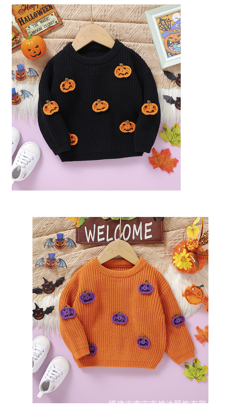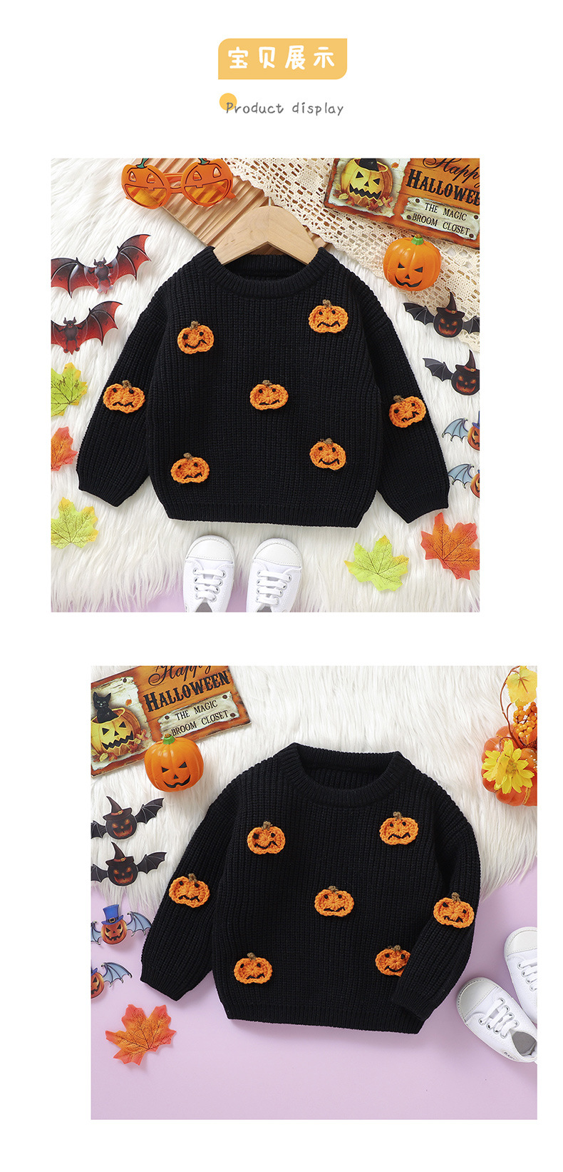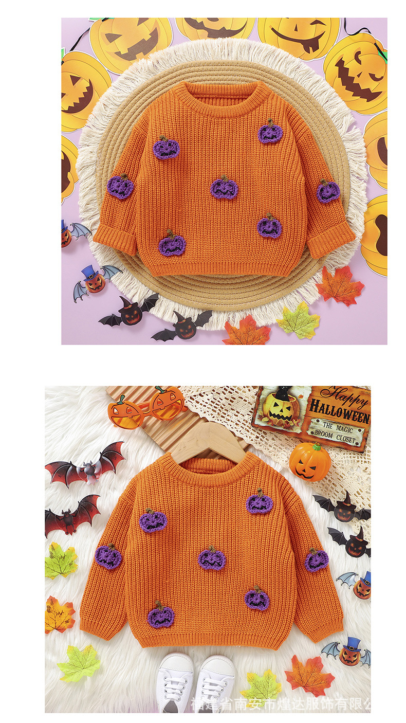 Ins 뜨거운 판매 가을, 겨울 새로운 스타일 유아 할로윈 입체 호박 패턴 니트 탑 남성과 여성 베이비 스웨터스토어 가기