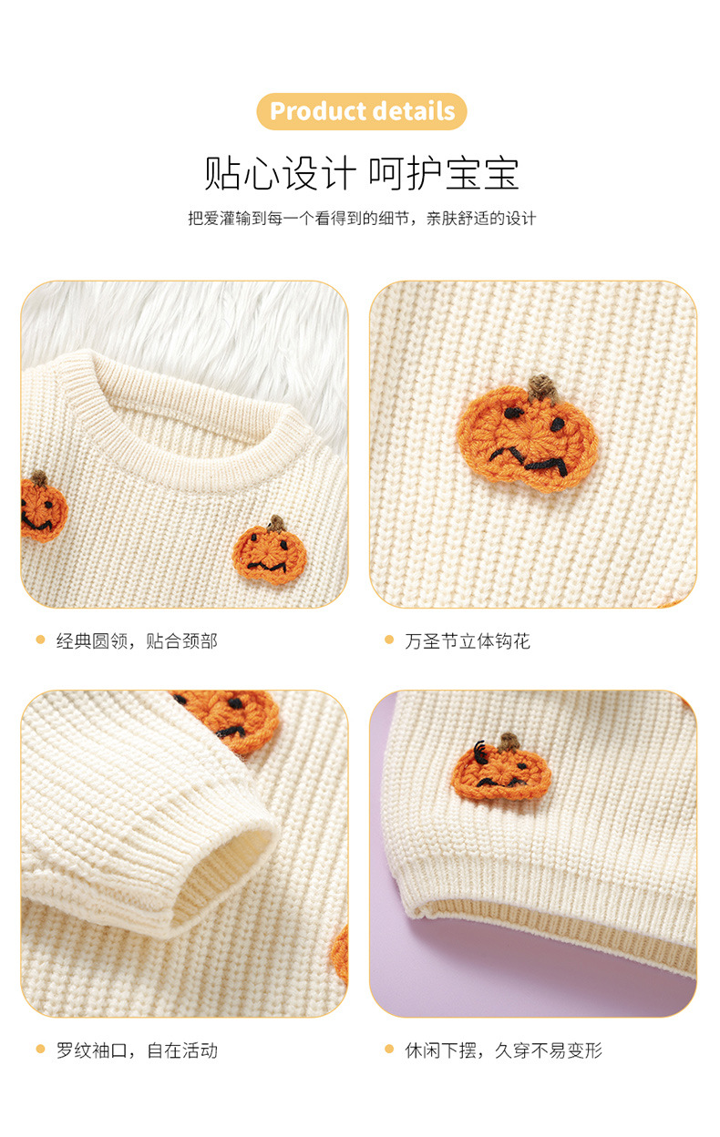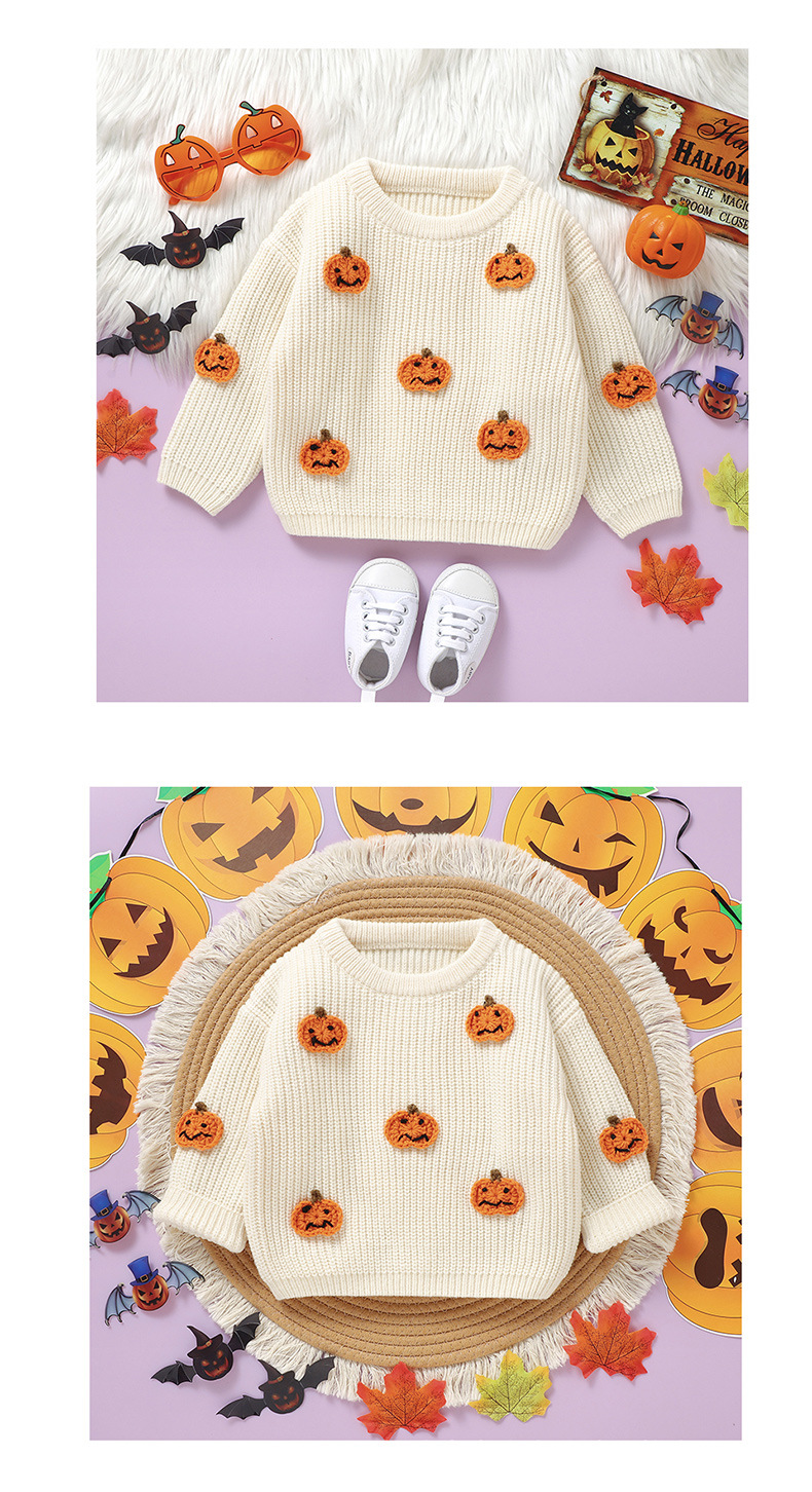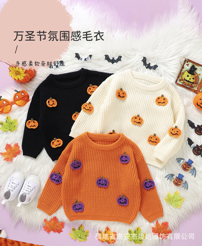 Ins 뜨거운 판매 가을, 겨울 새로운 스타일 유아 할로윈 입체 호박 패턴 니트 탑 남성과 여성 베이비 스웨터스토어 가기