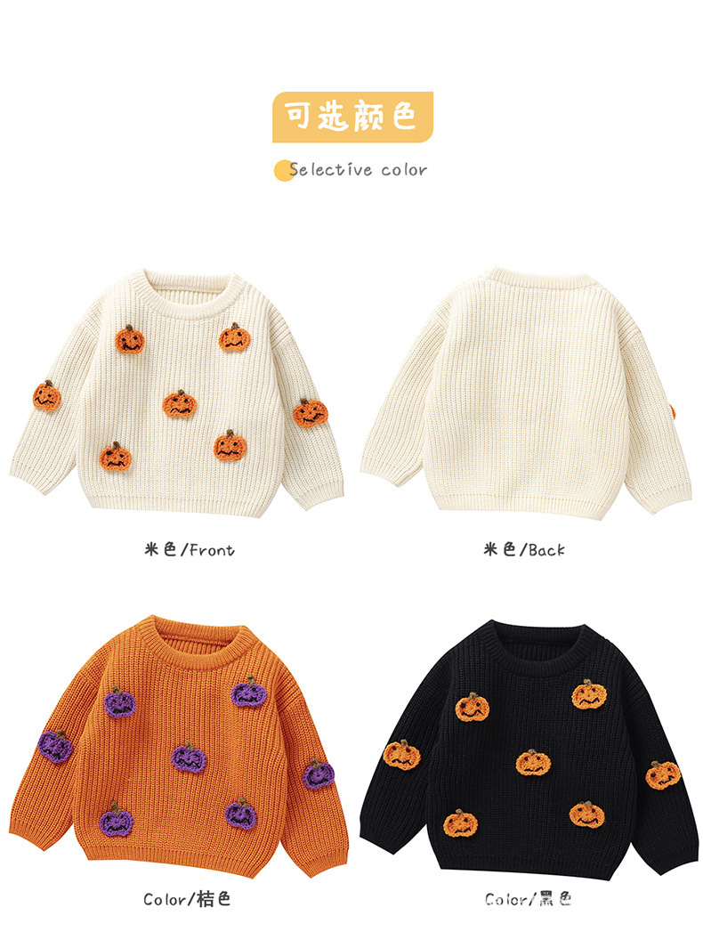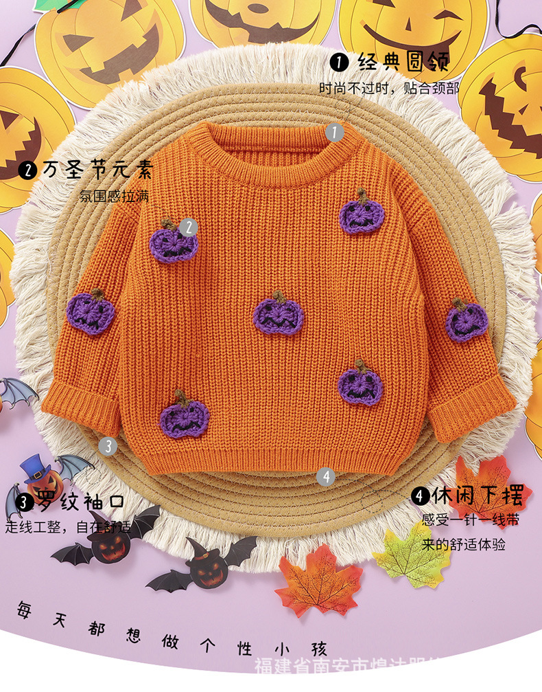 Ins 뜨거운 판매 가을, 겨울 새로운 스타일 유아 할로윈 입체 호박 패턴 니트 탑 남성과 여성 베이비 스웨터