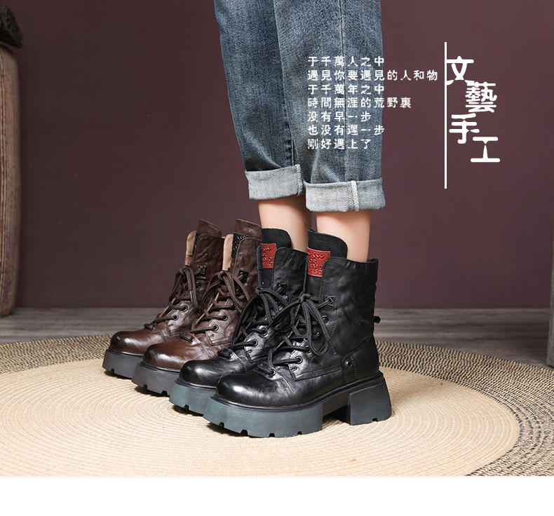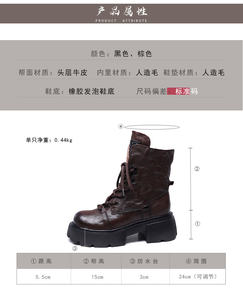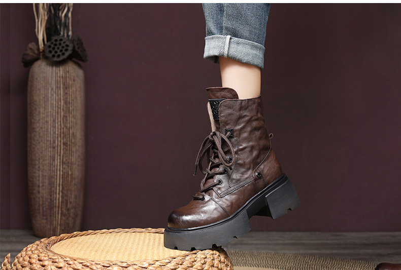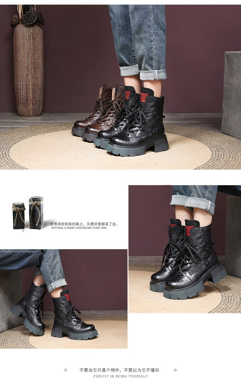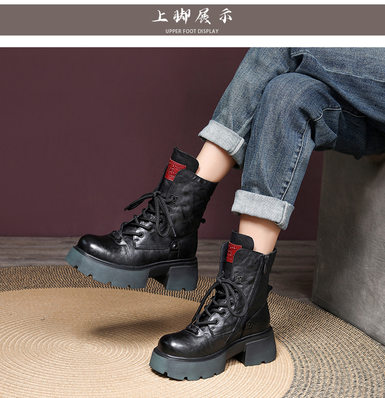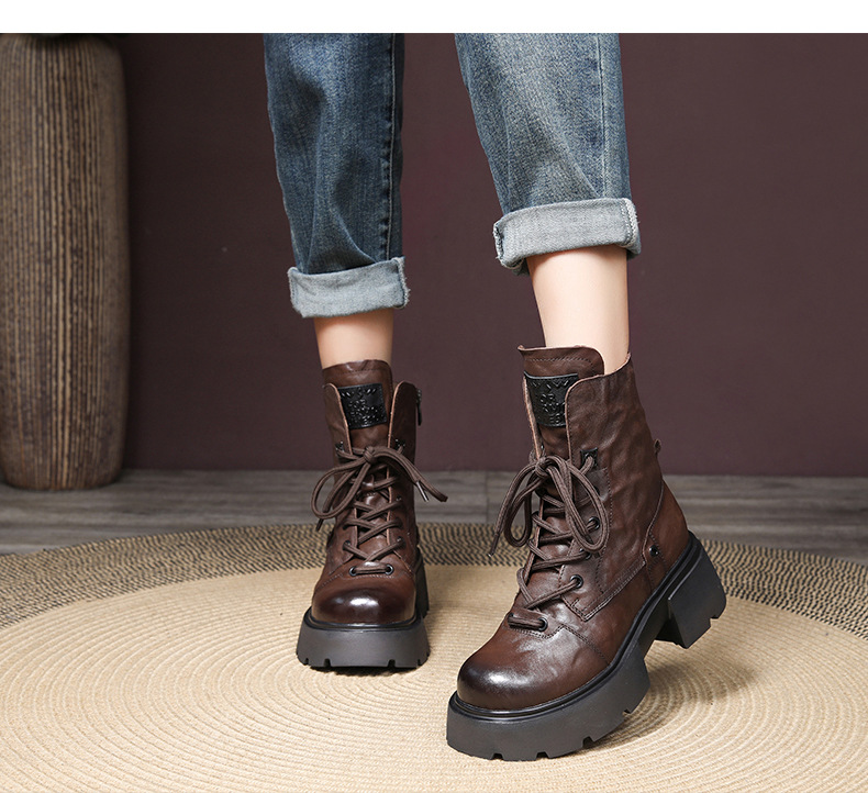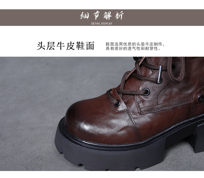 2024 겨울 새로운 첫 번째 레이어 소 가죽 두꺼운 바닥 두꺼운 힐 작은 측면 지퍼 마틴 부츠 기모 따뜻한 면화 부츠스토어 가기