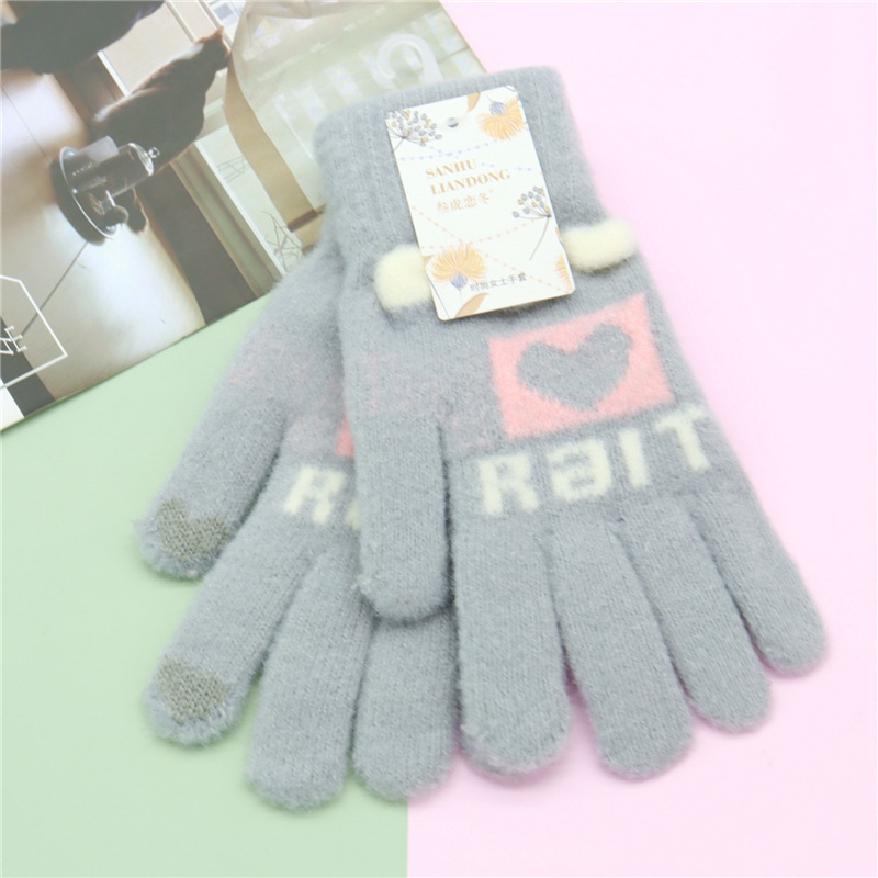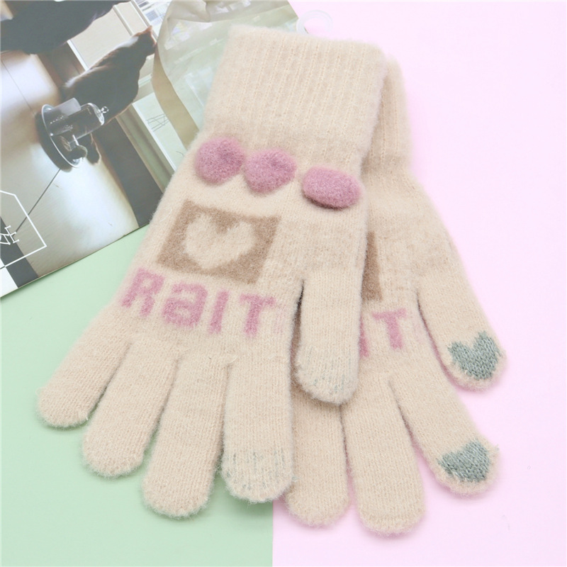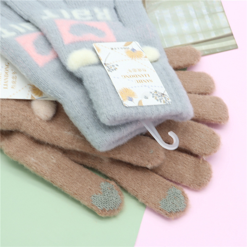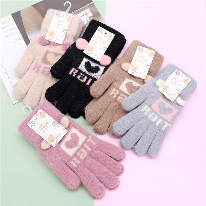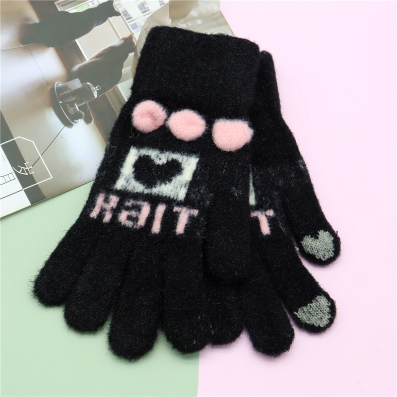 터치 스크린 장갑 크리스탈 벨벳 가을과 겨울 니트 만화 사랑 전체 손가락 따뜻한 두꺼운 새로운 만화 감기 방지 성인스토어 가기