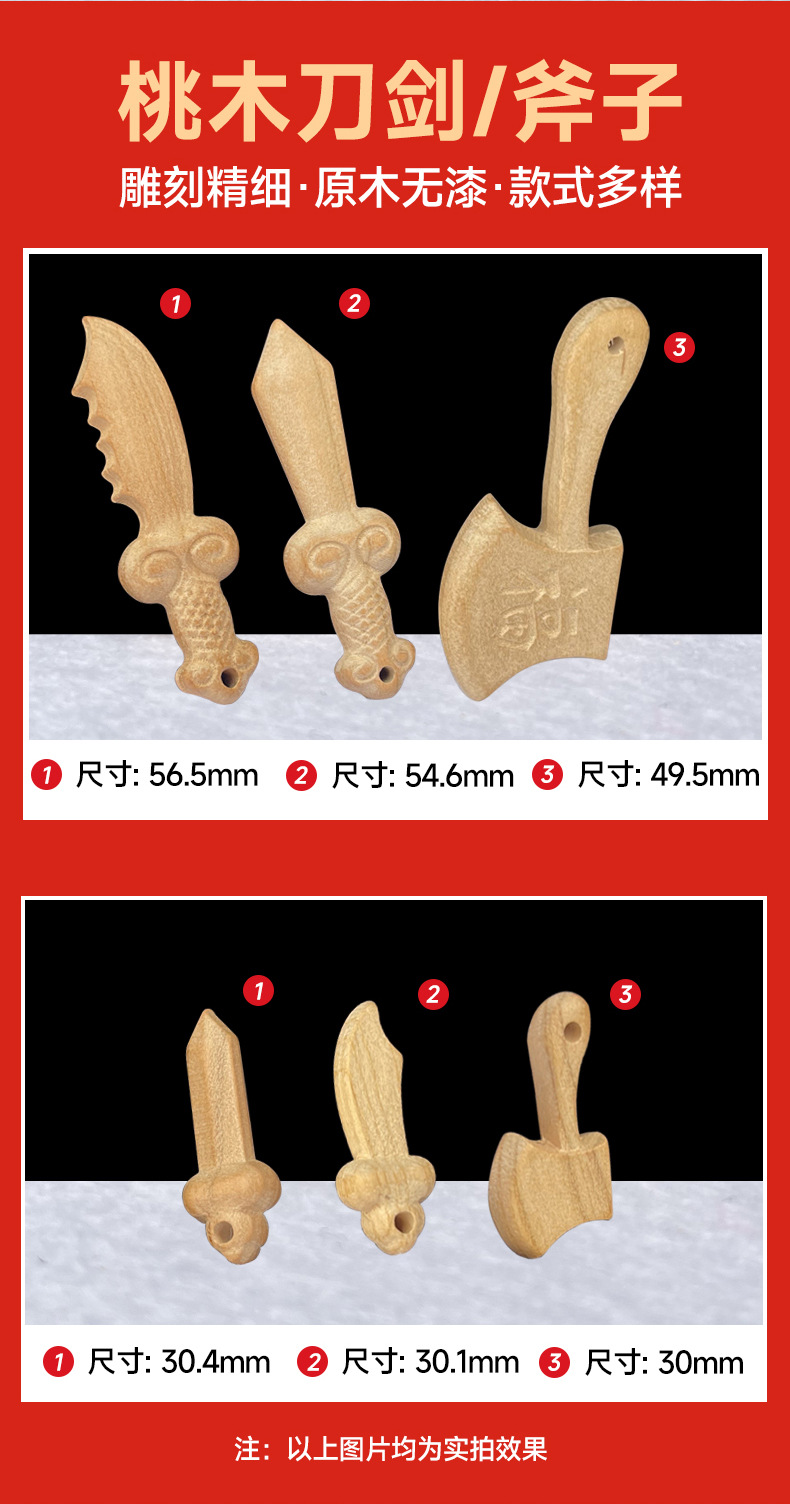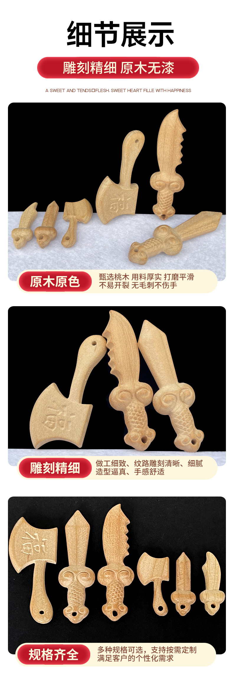 복숭아 나무 칼/칼/도끼 도매 아기 교수형 액세서리 아기 안전 펜던트 DIY 수제 액세서리스토어 가기