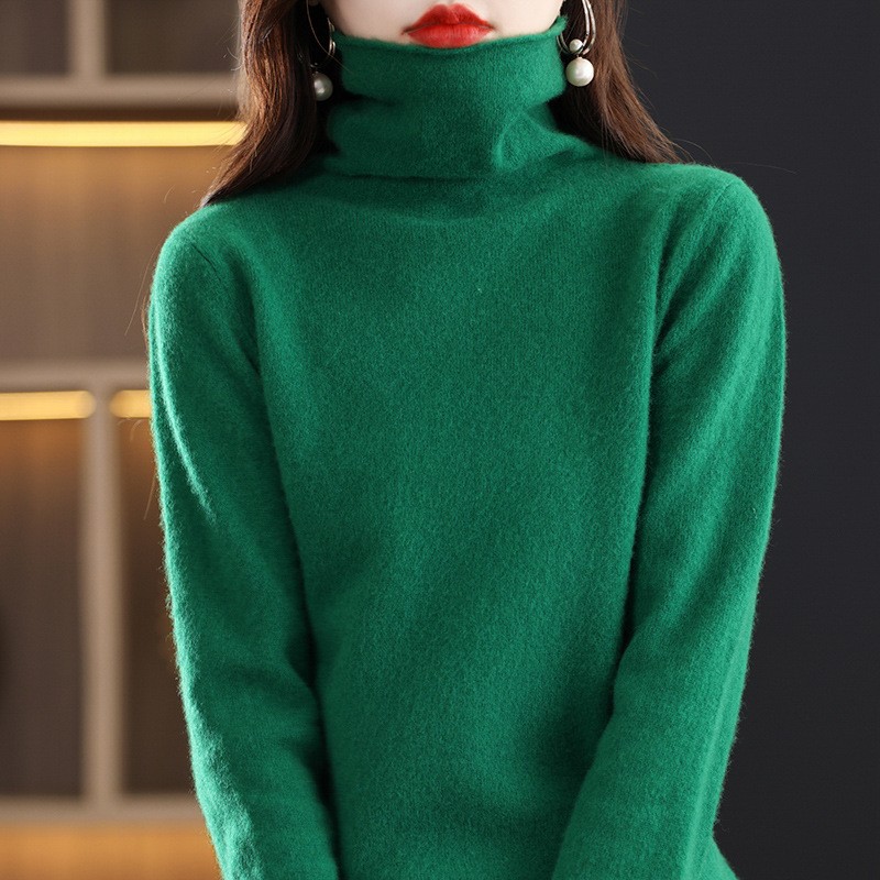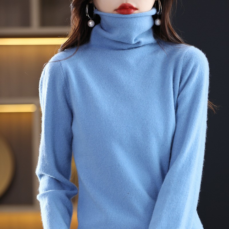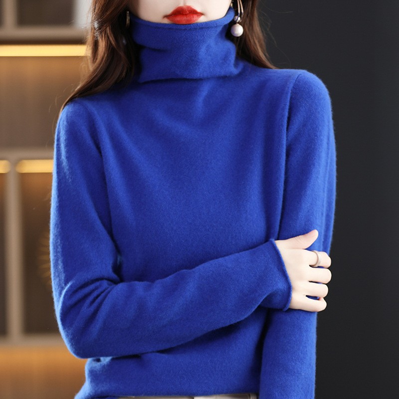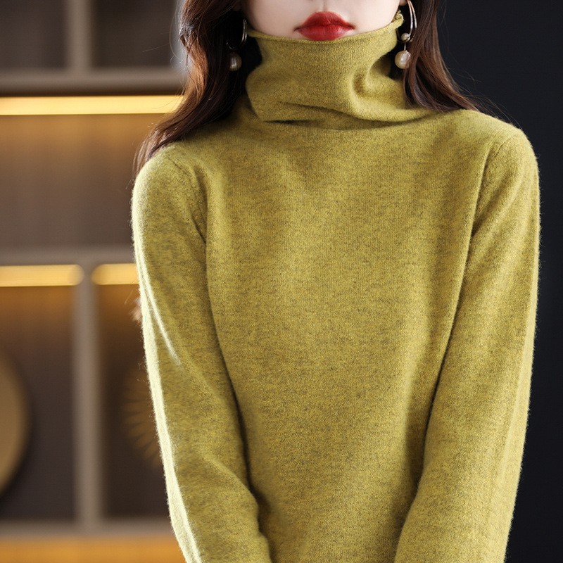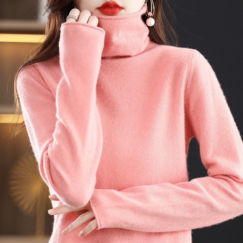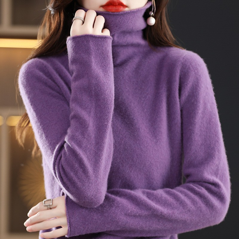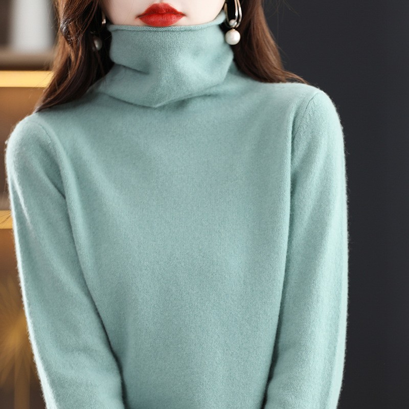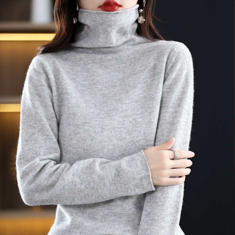 포장 된 칼라 울 스웨터 여성 100 순수 양모 가을과 겨울 높은 칼라 스타일리키 내부 얇은 니트 베이스 캐시미어 스웨터